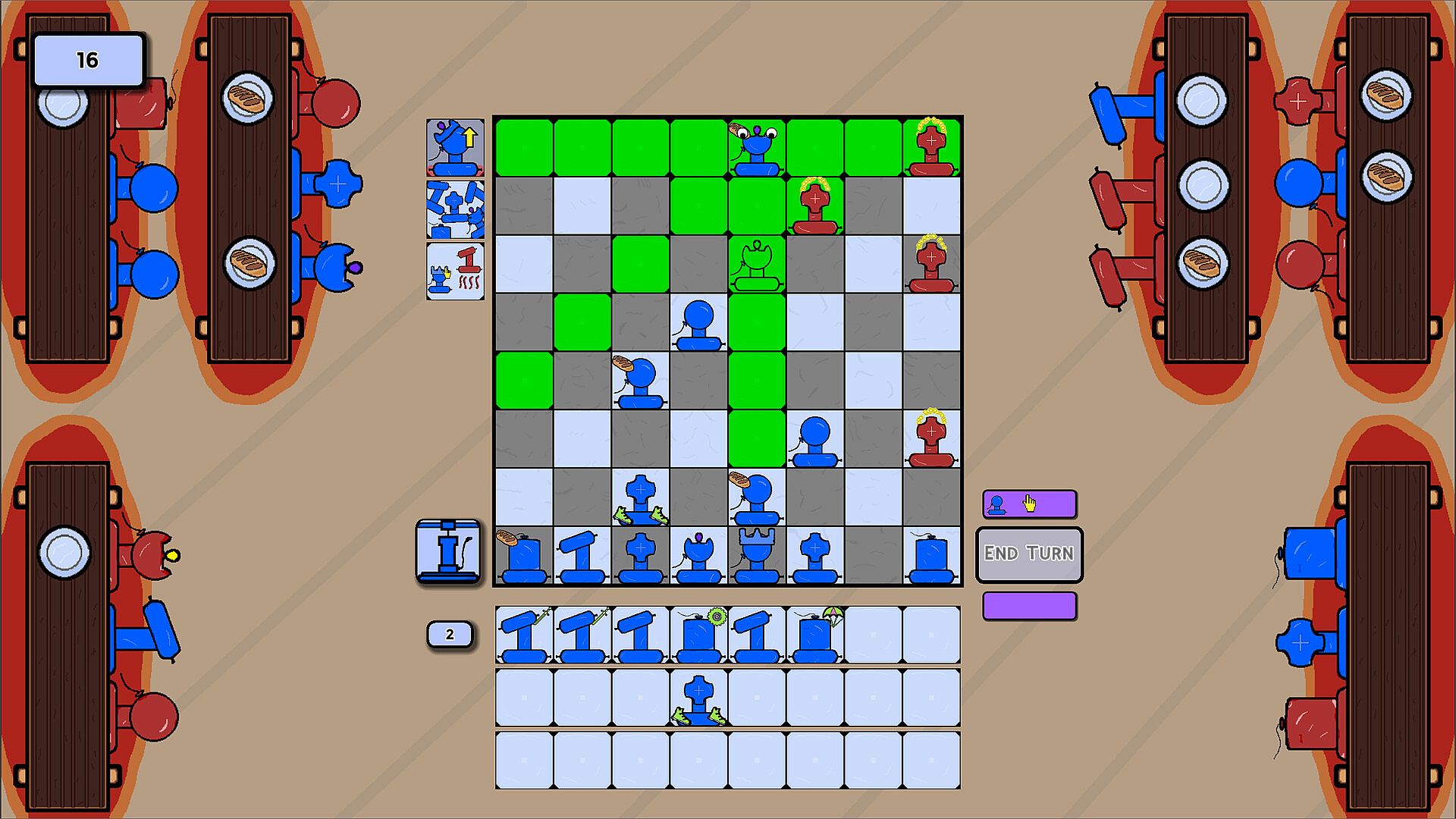Legal moves are visualized for the player, and typical chess strategies are useless.