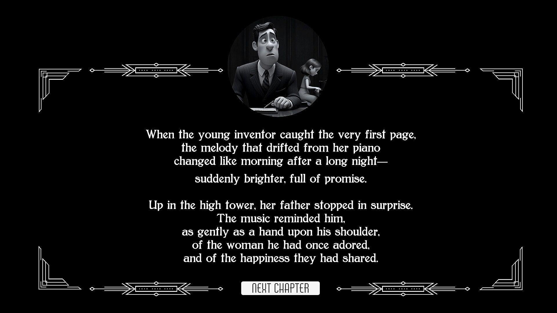 This is a game about love. It is the story of a young inventor trying to reach the girl he has fallen in love with through the power of her music. You guide a red balloon through the maze of city streets, hunting for fuel to reach the sheets of music flying through the wind. And with every sheet you catch, you advance the story of love, loss and redemption.