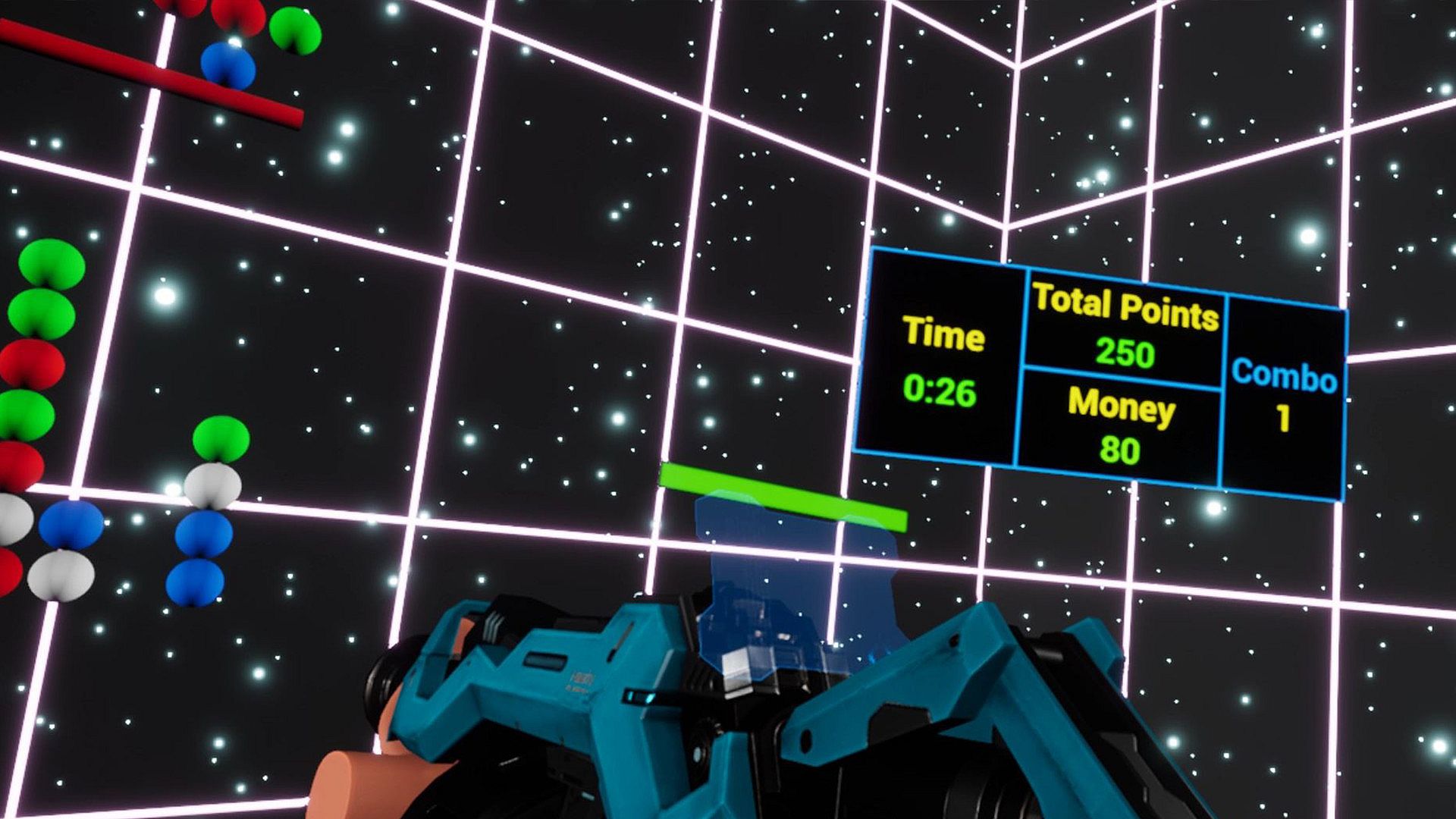 Beyond the basics, BallsBlasterVR incorporates a progression system tied to your performance. Points and money earned from combos unlock bullet purchases, ensuring you adapt your approach based on available resources. The sci-fi weapon offers varied bullet types, each suited for different combo strategies, which adds depth without overwhelming complexity.