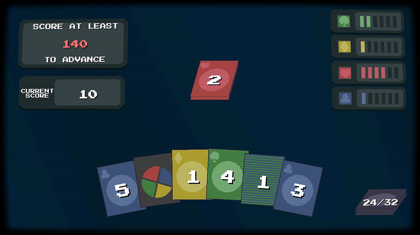 - You start with a basic deck of cards, with values between 1-8 across 4 suits.