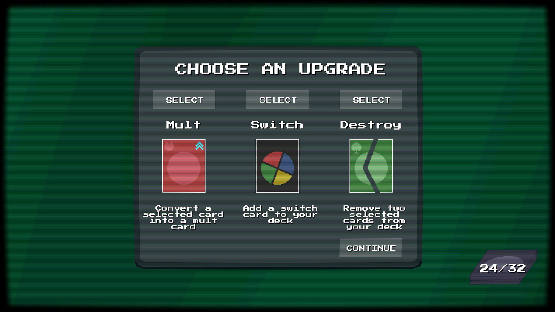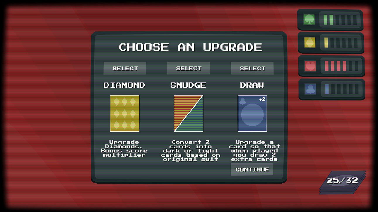 - Upgrade the cards in your deck to increase the score your cards provide, or make it easier to stack them.