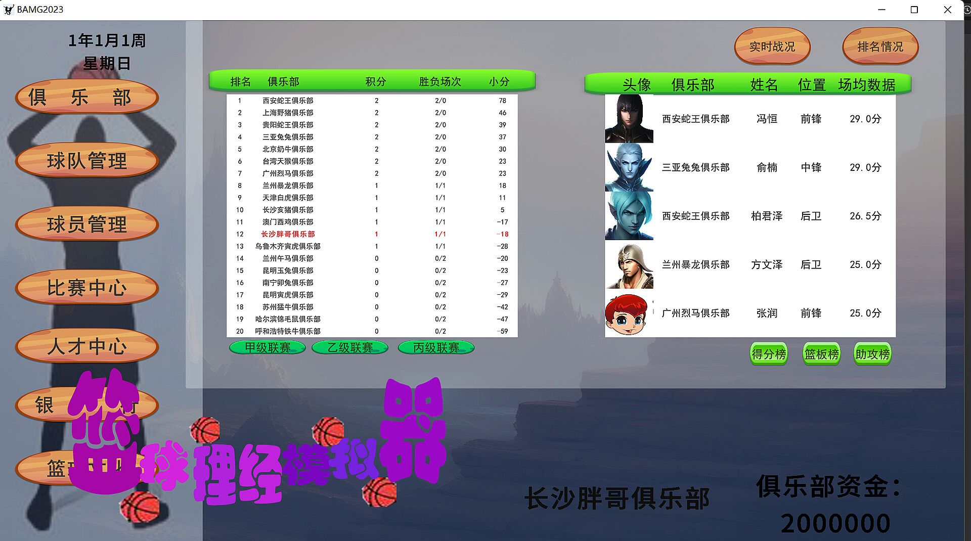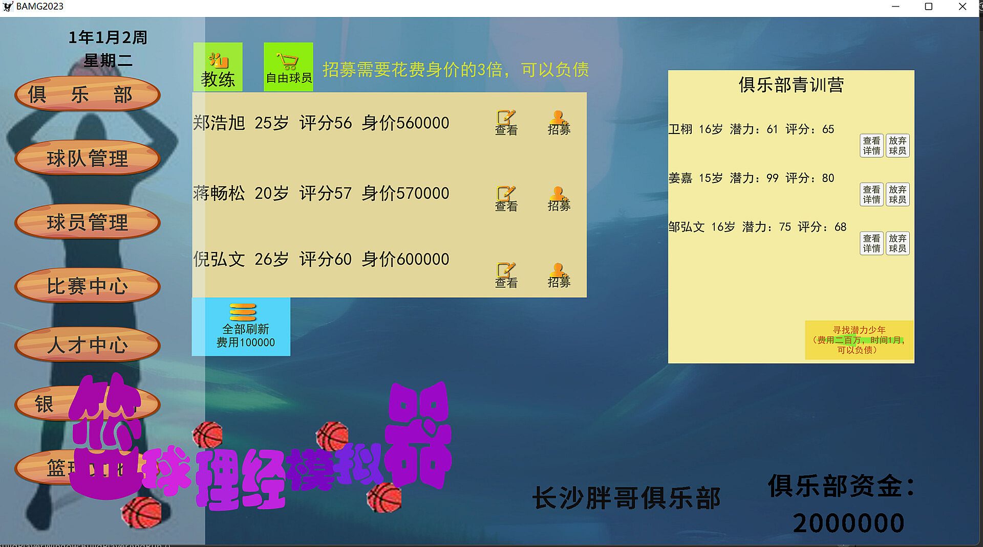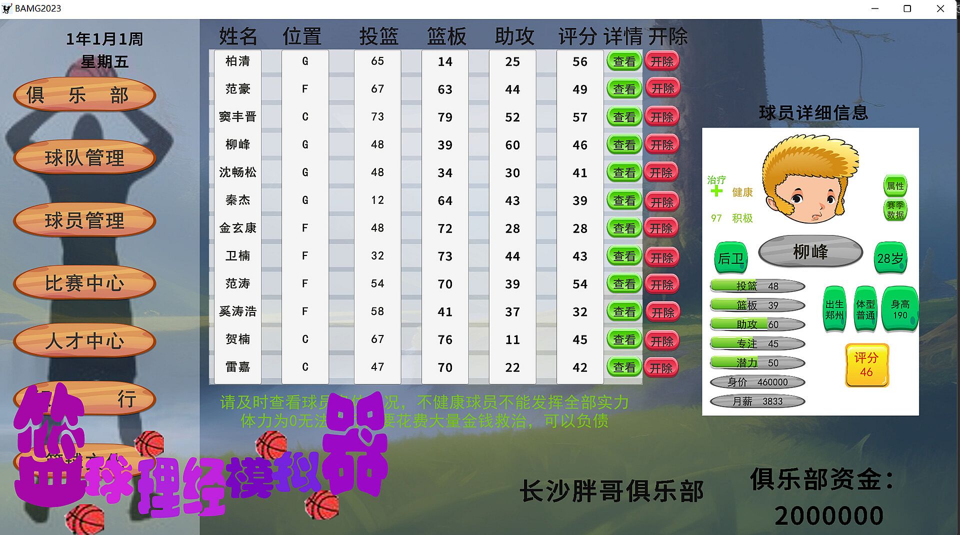 Welcome to “BGMG2023” - a strategic and challenging basketball manager simulation game! In this game, you will assume the role of a true basketball team general manager, overseeing the entire team, building it from scratch and leading them to win the championship.
