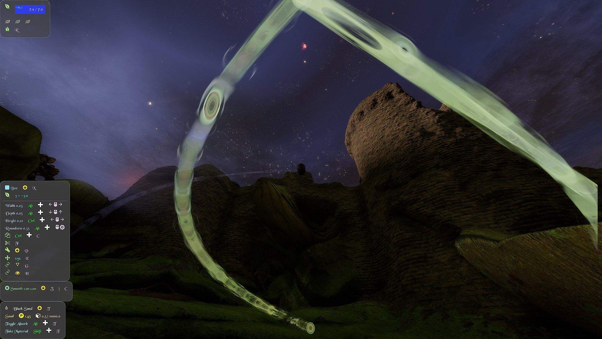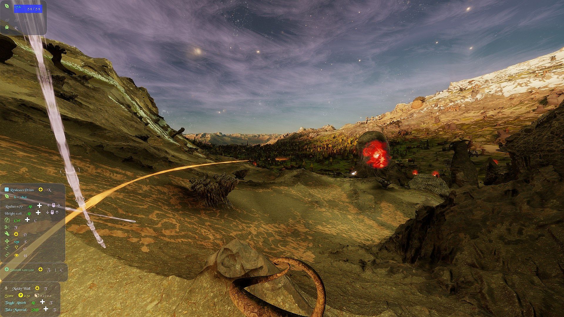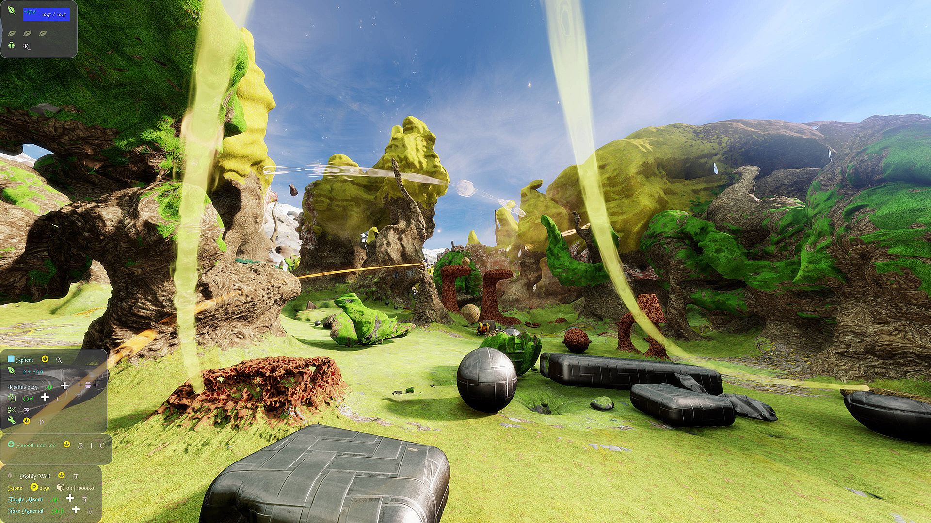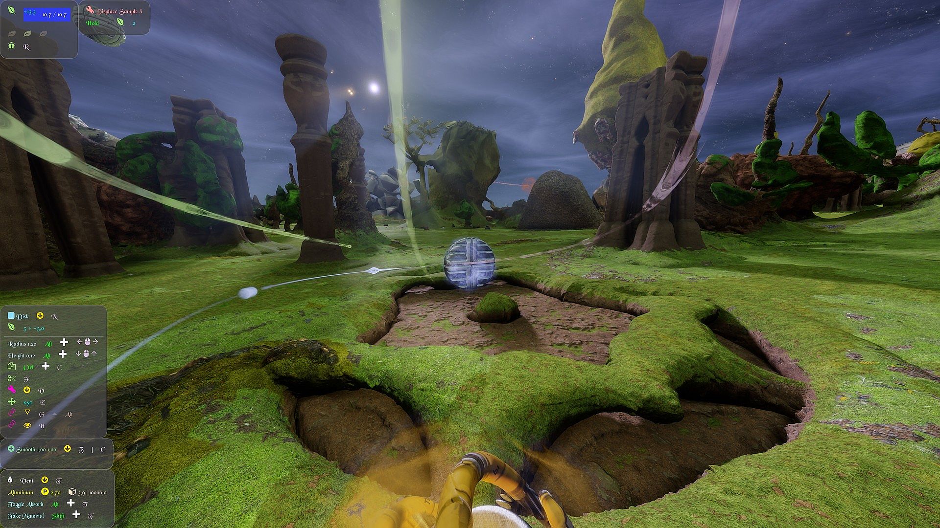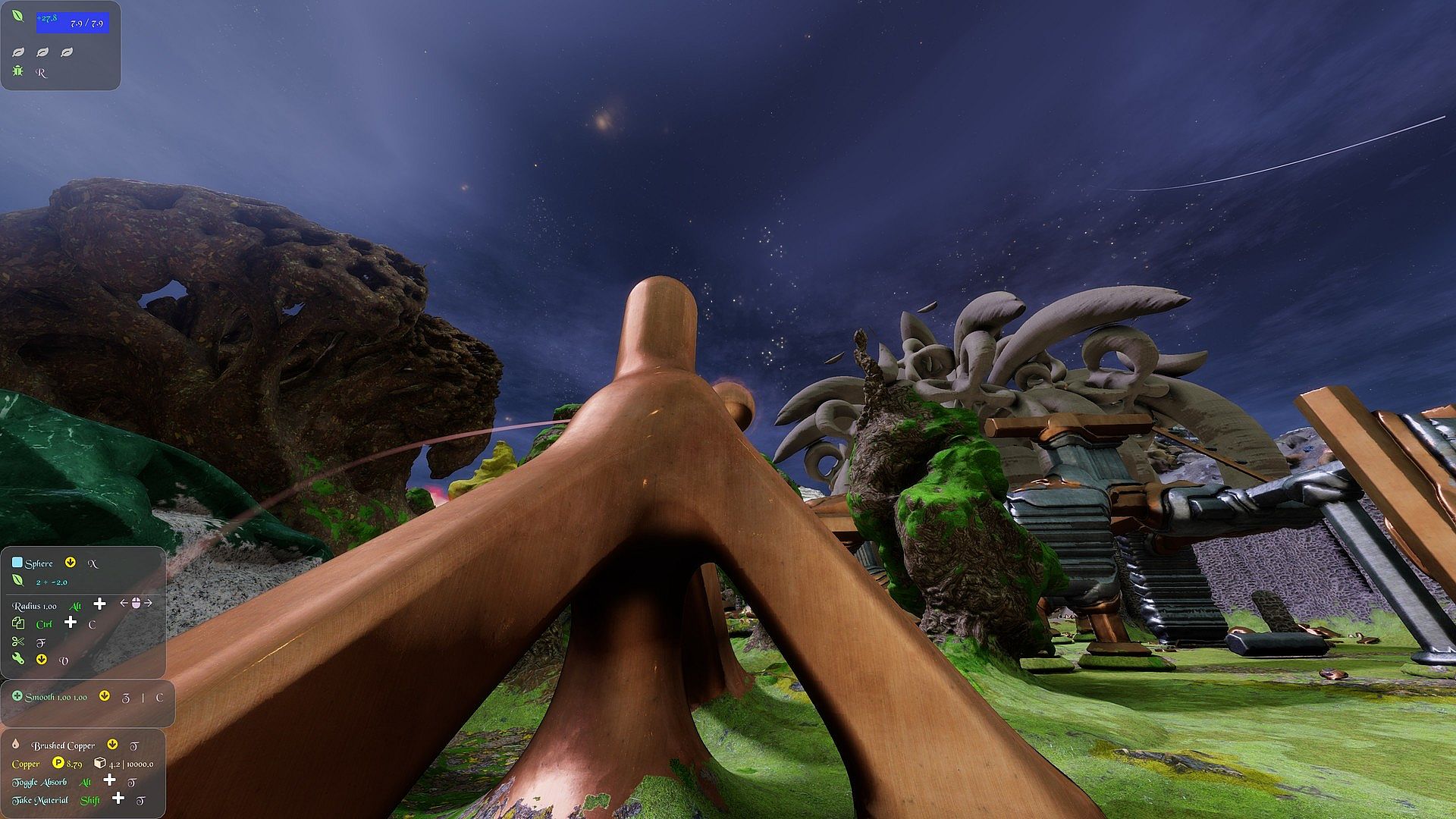 • Using keyboard + mouse it controls like a first person game, with the addition of key commands to manipulate Voxels. Also supports Xbox style controllers.