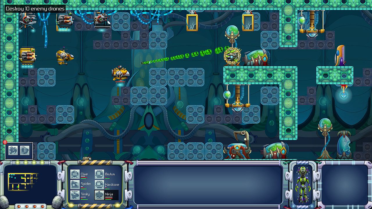 • Manage a squad of 12 drones, each with their own set of class specifications and powers
