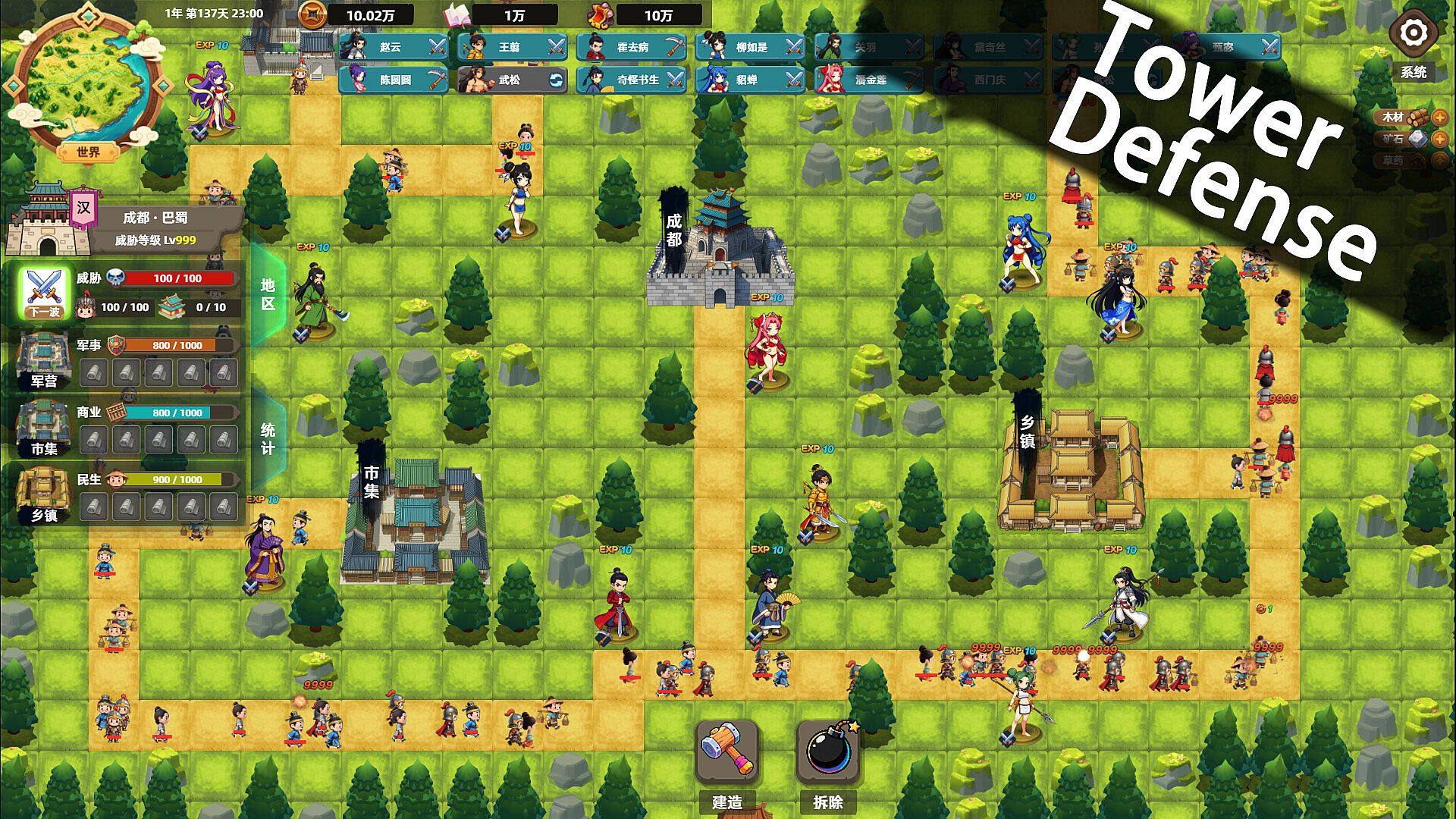 • Each character functions as a stationary tower—they do not move on their own. Whether engaged in combat, gathering resources, or crafting, all actions are carried out in the form of tower defense (TD).