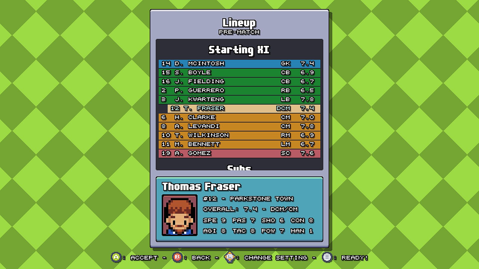 Featuring fast-paced arcade matches and easy-to-learn mechanics, Bang Average Football is the perfect game for players of all skill levels. Choose from a range of men's and women's teams or design your own. Play with and against friends in local multiplayer or go for glory as both player and football manager in the single-player, RPG Story mode.