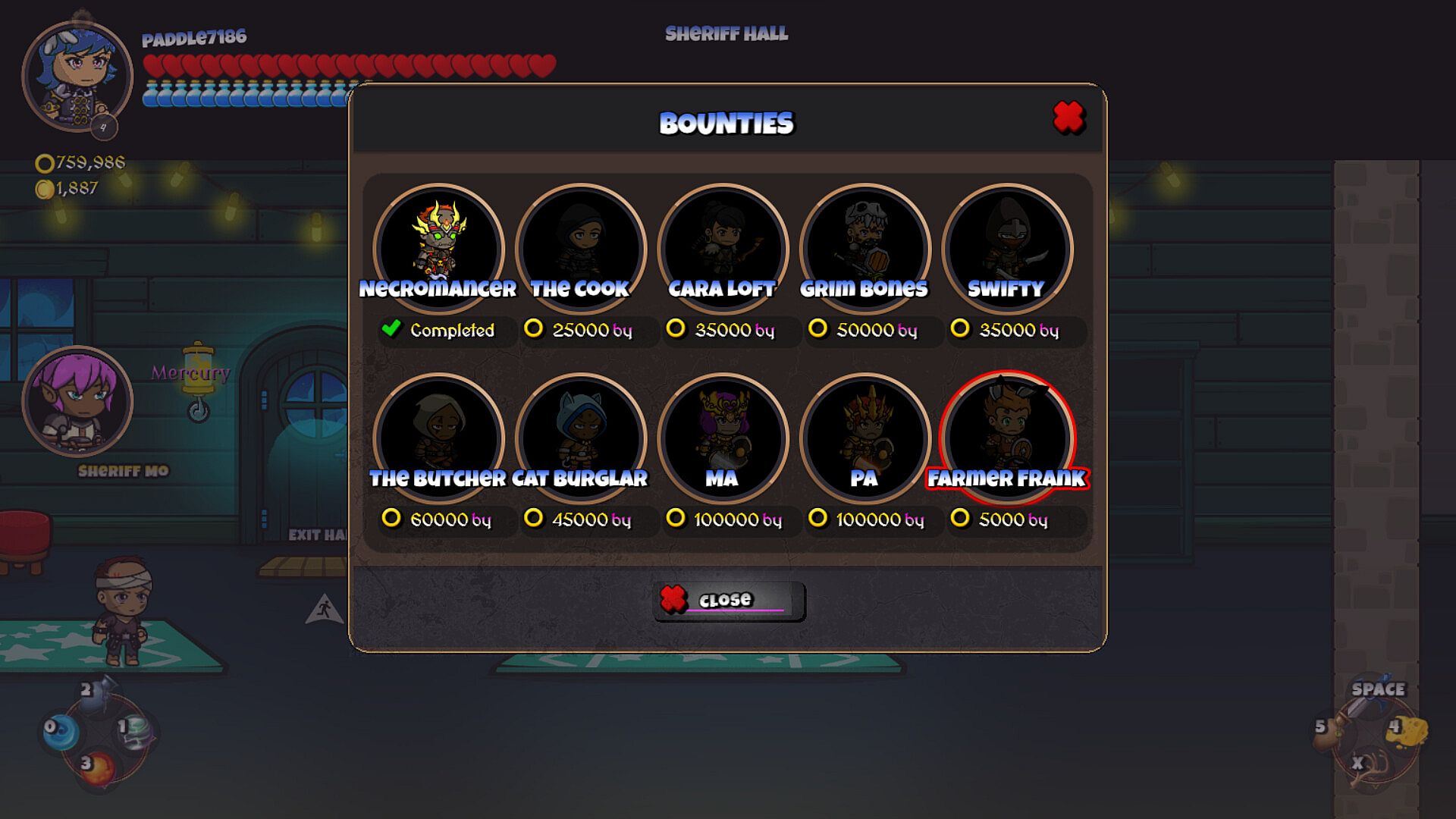 • BOUNTY - Performing tasks and/or slaying monsters will lower your bounty, certain other tasks may increase your bounty. The goal is to get your bounty to zero and earn your ticket to Paradise.