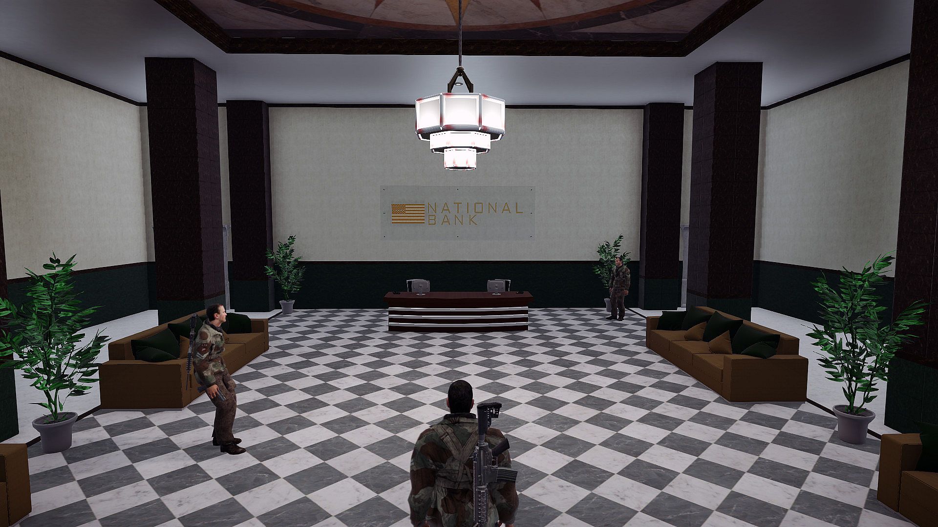 The game takes place on a bank, in the center of the city, where you can explore various areas of the bank, as long as you have the appropriate access card, thus having different levels of security. In addition to that, you must complete some objectives to complete your mission. You will only have a rifle and a pistol as work tool, and you should assemble a strategy to position it properly, as the bank has metal detectors. You will have to face an area full of security, with strategy.