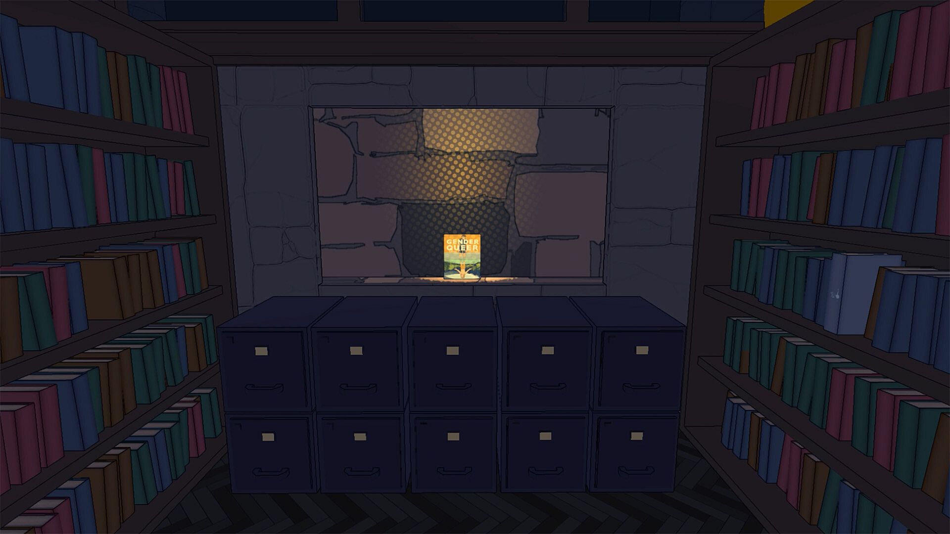 Play as Ruby (they/them), a journalism major on a surreal, after-hours adventure to investigate the disappearance of books from their college library. Their quest for library justice leads to dark political revelations and a magnetic connection with a mysterious trans librarian. Can Ruby live out their own queer story, even as queer history is being erased?