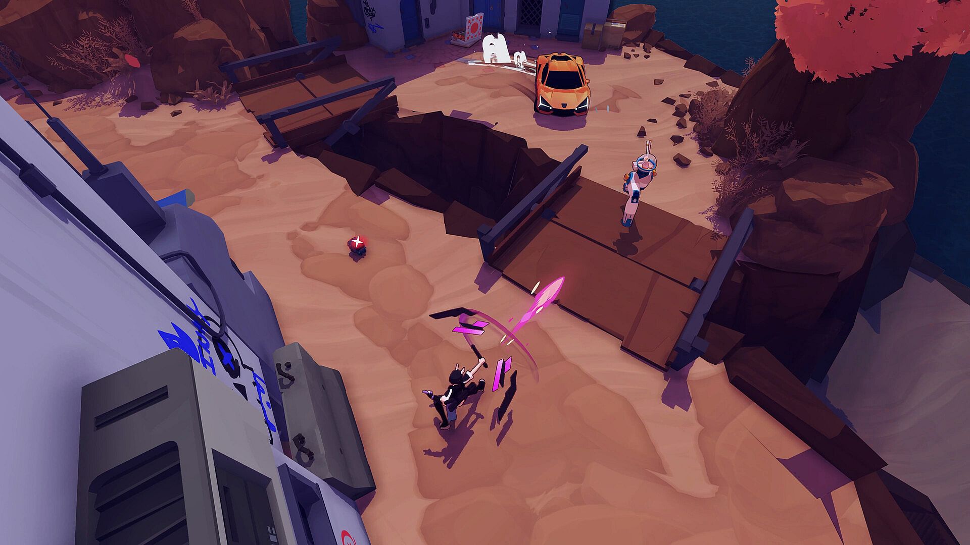 Block escape routes with a crane’s payload, transform into a vending machine for a sneaky ambush, or do a drive-by in a 1942 Panzerkampfwagon Tiger Tank. BAPBAP is a PvP sandbox where nothing make sense but also everything makes sense.