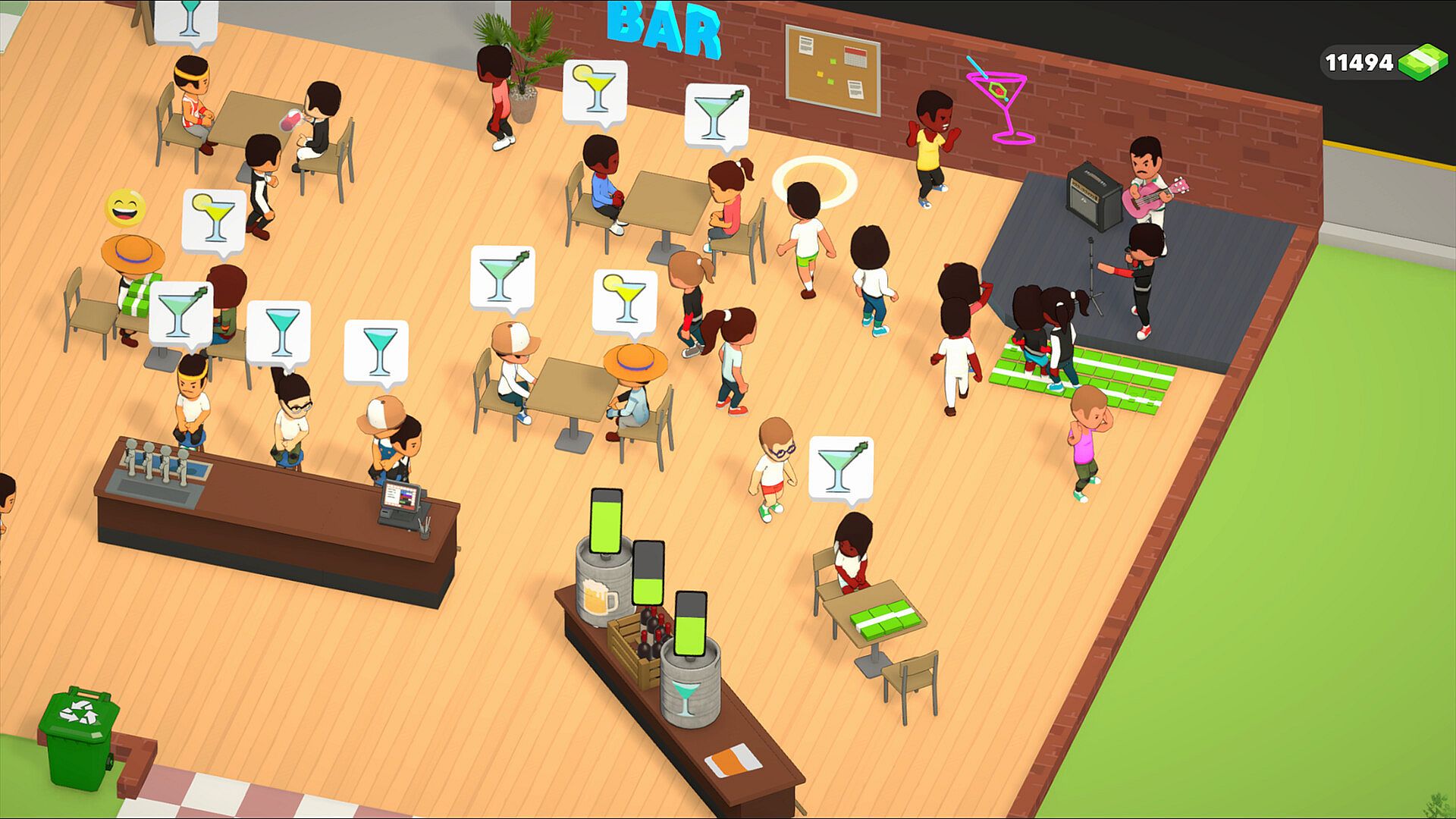 Manage unique bars, serve unpredictable customers, and relax.