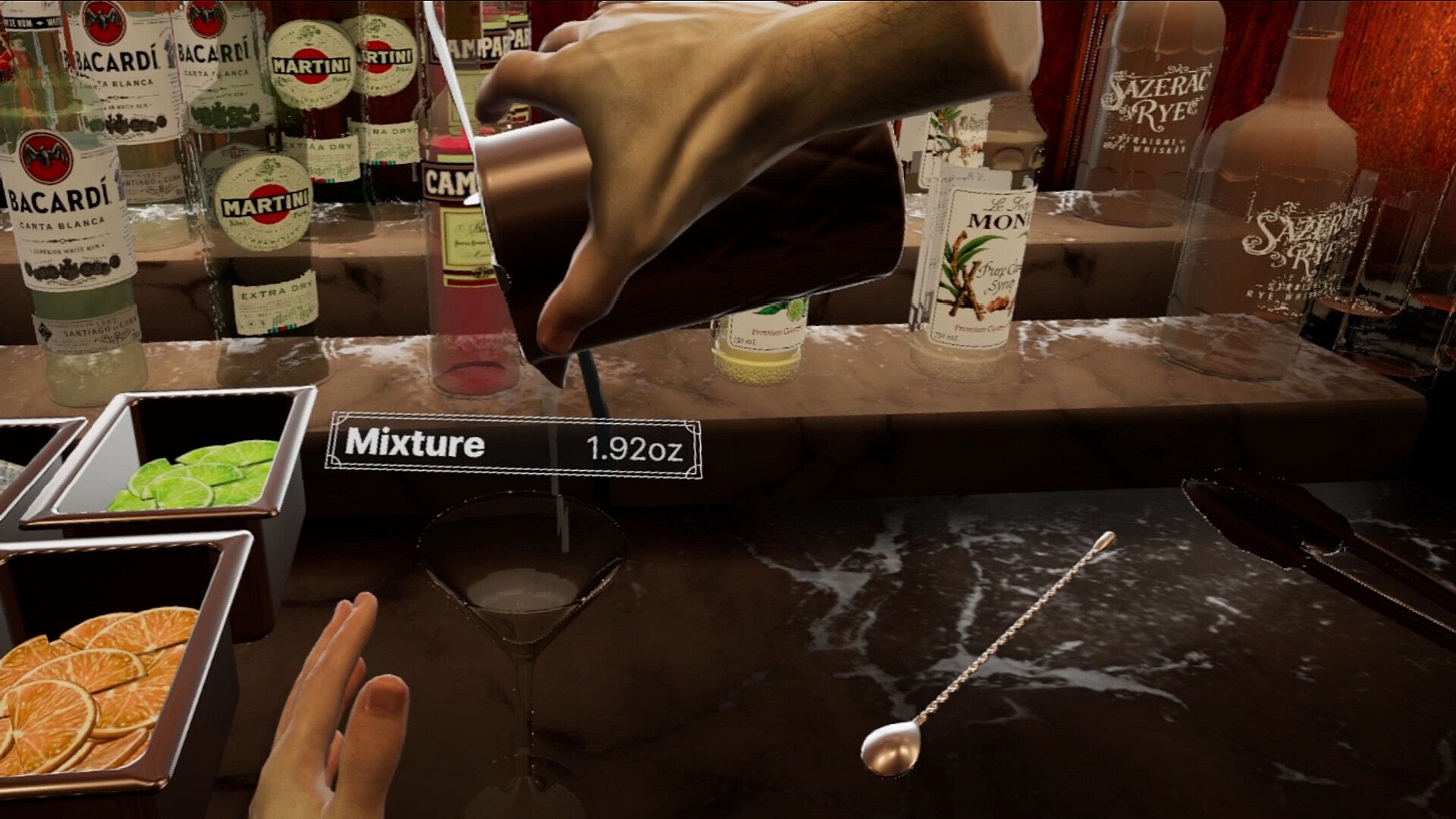 Try manufacturing cocktails using various cocktail manufacturing techniques such as stir, shaking, and mixing in VR environment.