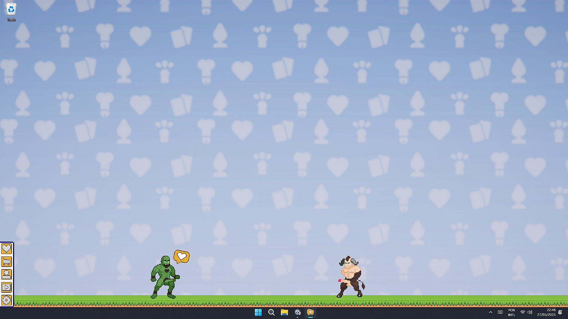 Bara At Your Desk is an erotic idle game where ripped, naked men lounge on your screen—stroking, flexing, and aching for your attention while you go about your day.