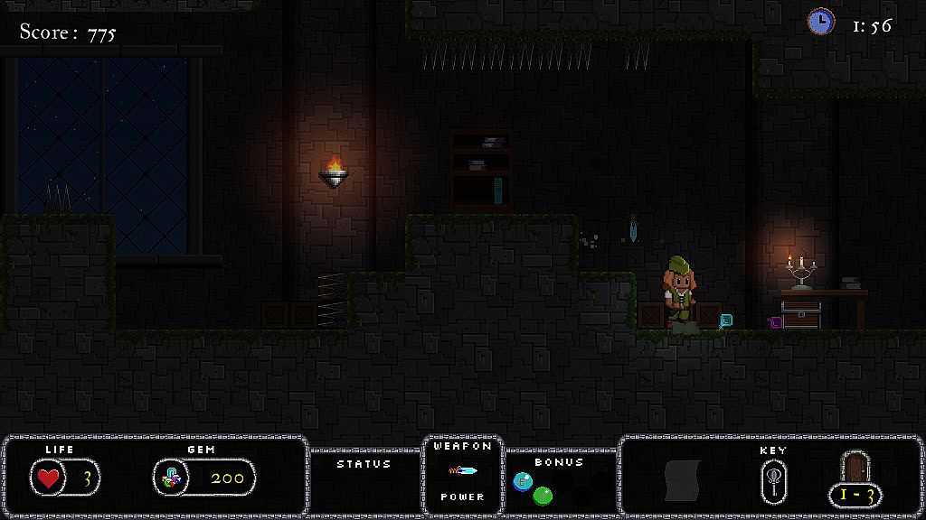 This game takes inspiration from early 90's platforming classics such as Rainbow Island, Rick Dangerous, Alex Kidd and Erik, which at the time were popular on the Amiga and consoles. Bard's Gold is slower paced than most current day platformers, but is extemely challenging. Players need to avoid enemies, traps and projectiles in order to progress. Being hit by any of them means instant death. Difficult puzzles and towering bosses will have to be overcome to reach the filthy goblin that stole the family treasure.