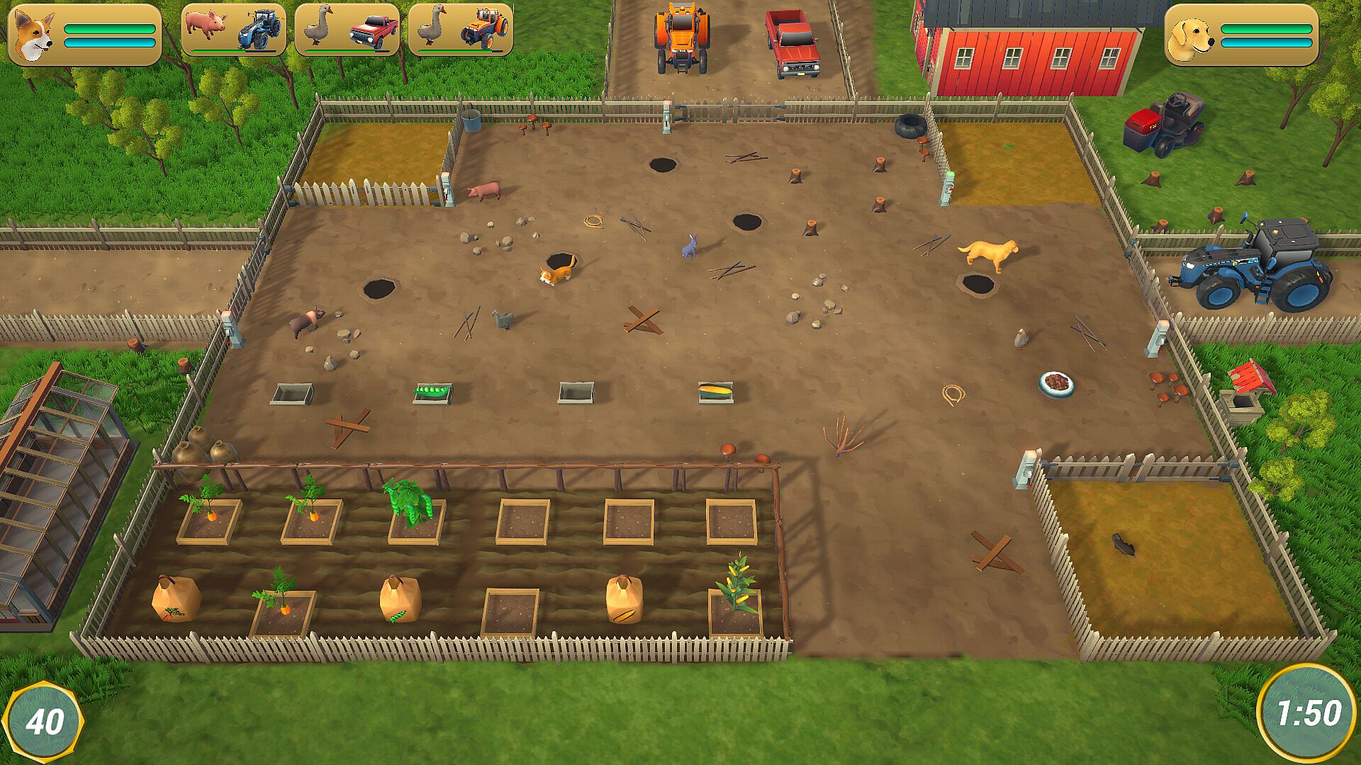 Bark and Catch – A fast-paced game for 1-4 players where you take on the role of dogs and must complete important farm tasks within a time limit: grow and prepare food, feed the animals, and deliver farm products to their destination.