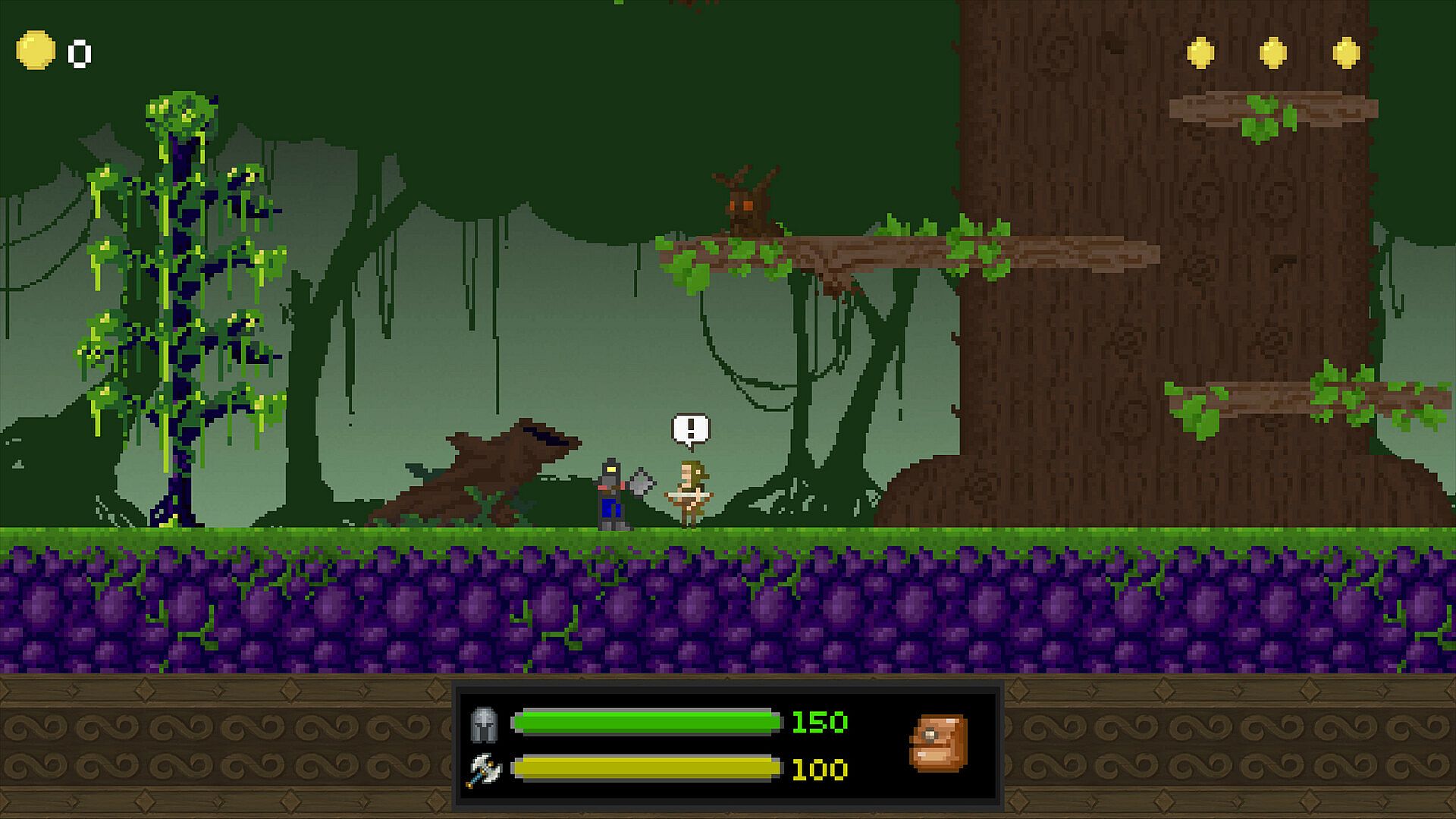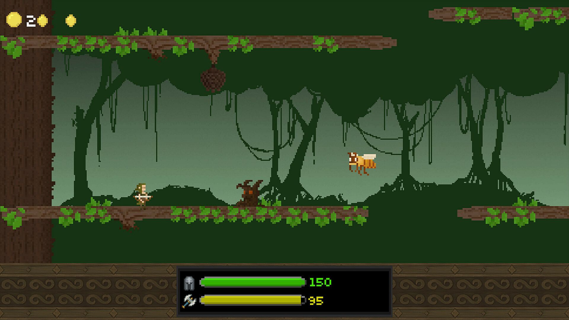 Use your main weapon, a big axe, to defeat enemies. Collect exploding potions and use them agains your opponents.