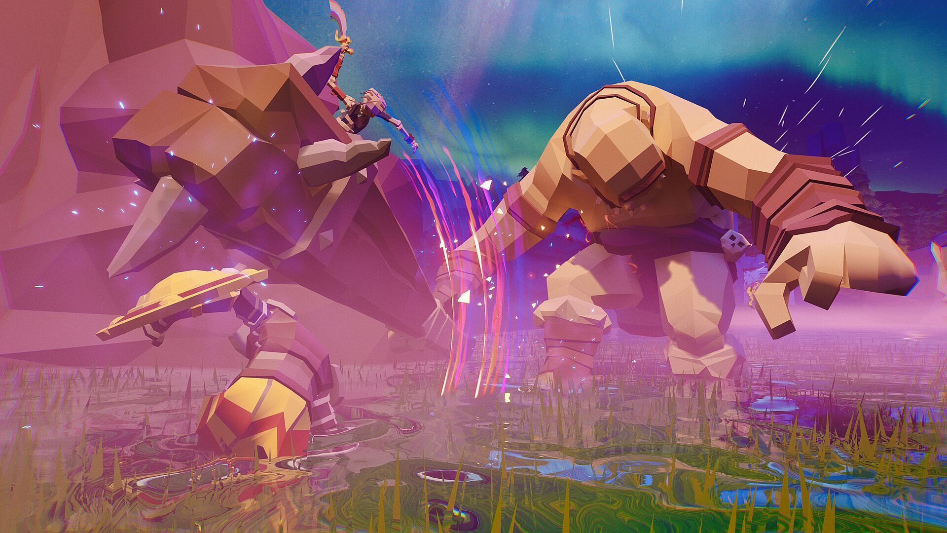 Face mighty guardians across four different biomes that block the path to Odin.