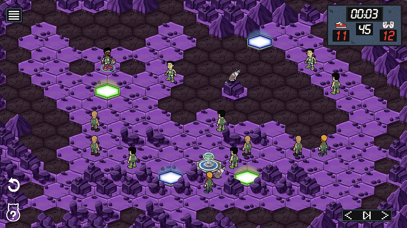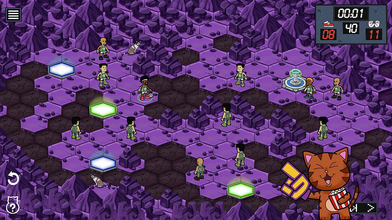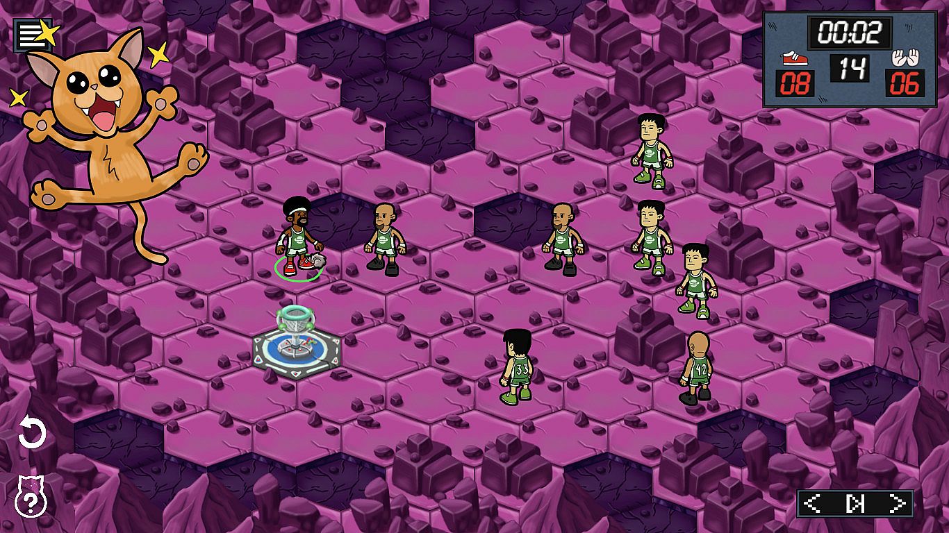 Move your character across grids with limited steps to line up the perfect shot in this casual sports puzzle game. Characters follow their unique abilities as you navigate to the basket and score before your turn ends. Set amid Mars landscapes filled with cats, it reimagines basketball rules into a fresh puzzle challenge. Tackle 50 levels that ramp up in complexity, blending grid-based movement and scoring precision. Original soundtracks enhance the playthrough. Basketball fans and beginners alike enjoy its accessible twists that skip traditional court rules.