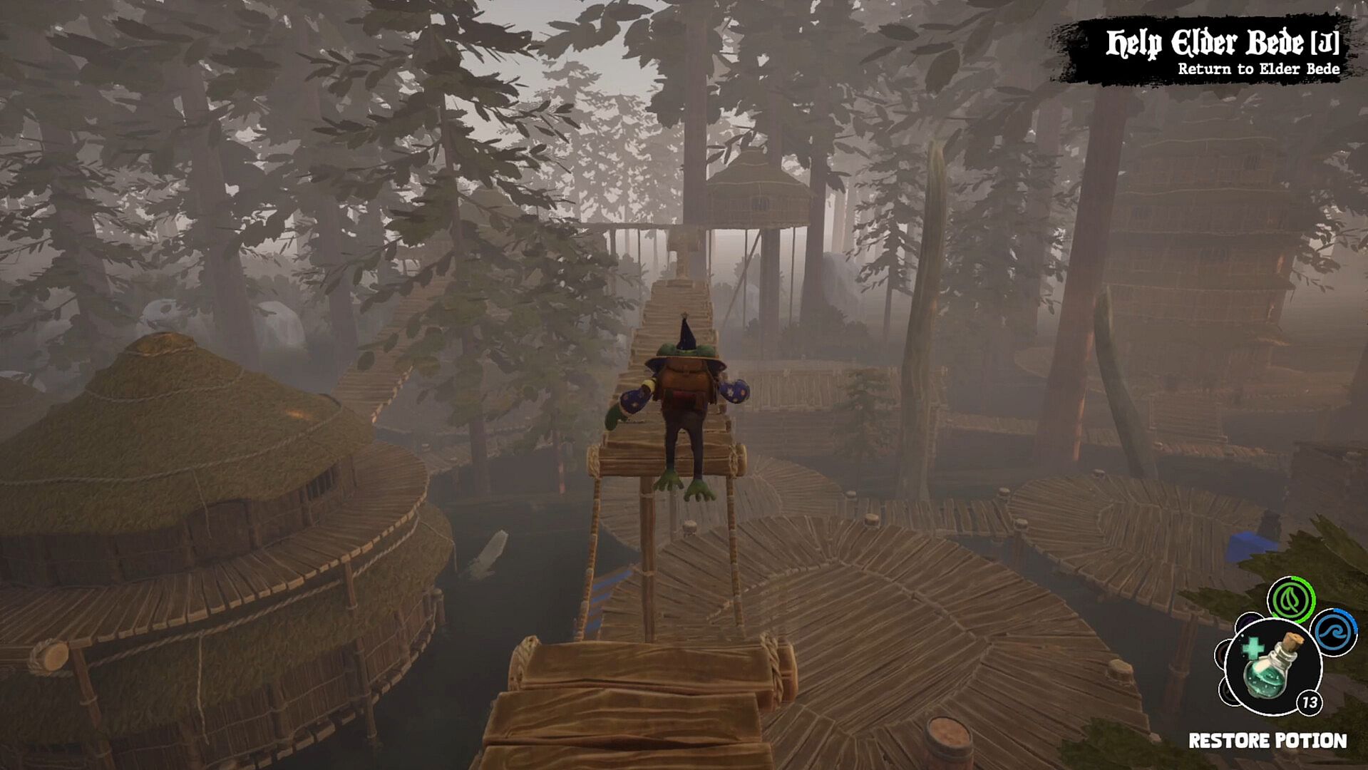 Explore through the world as you search for a cure to your froggy-curse! Use magical portals to travel between locations as you navigate around solving problems.