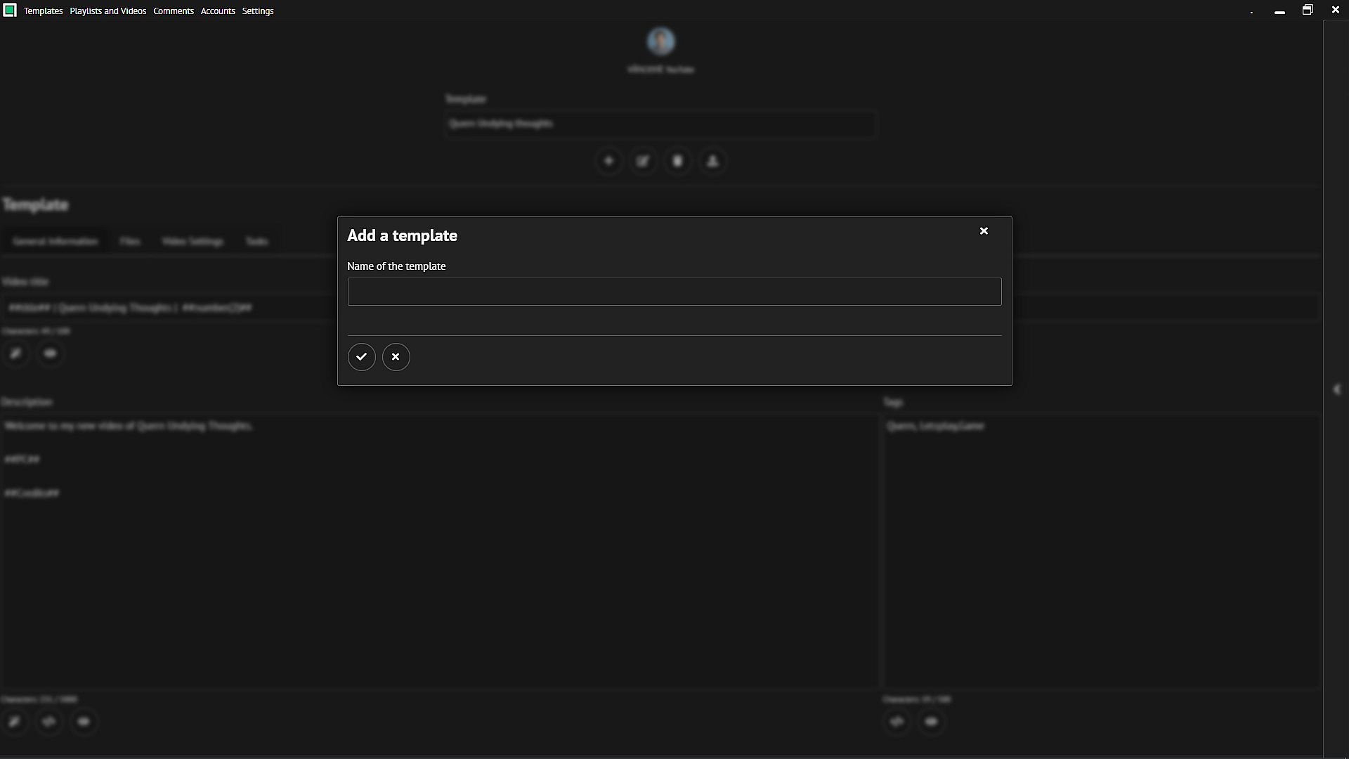 Create templates for your different projects and automate the titles of your videos. Use text blocks for your descriptions and tags and reuse frequently used text.Automate your uploads
