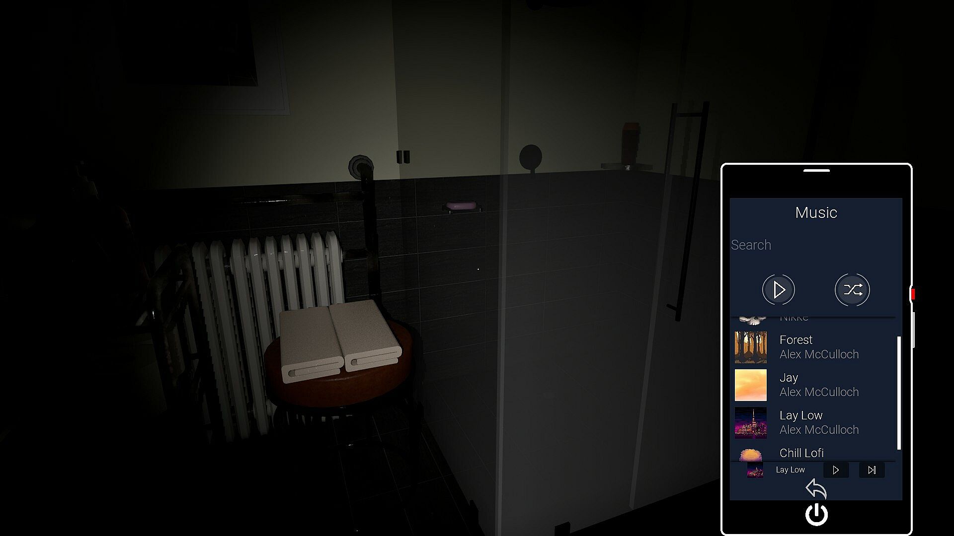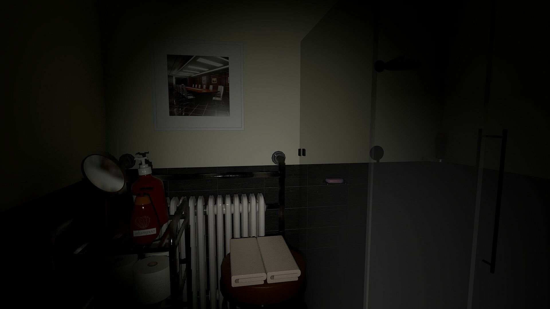 You're being trapped in your bathroom, be quiet and find a way to save yourself.