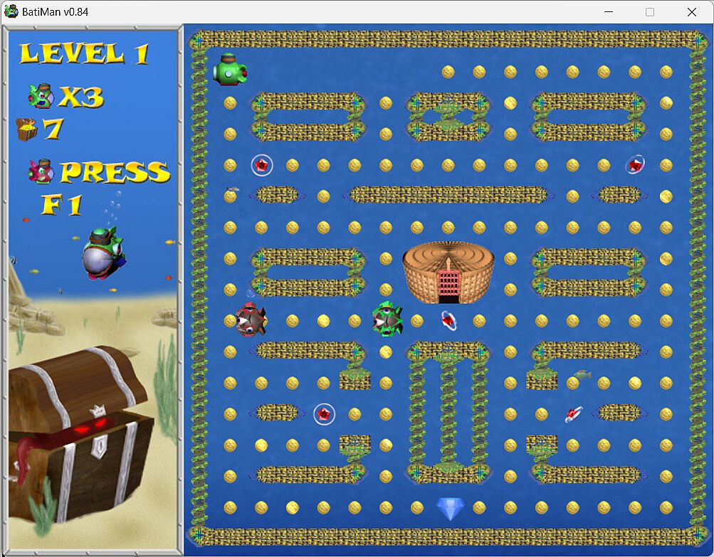 The aim of the game is to collect the sunken treasures and coins using small bathyscaphe.