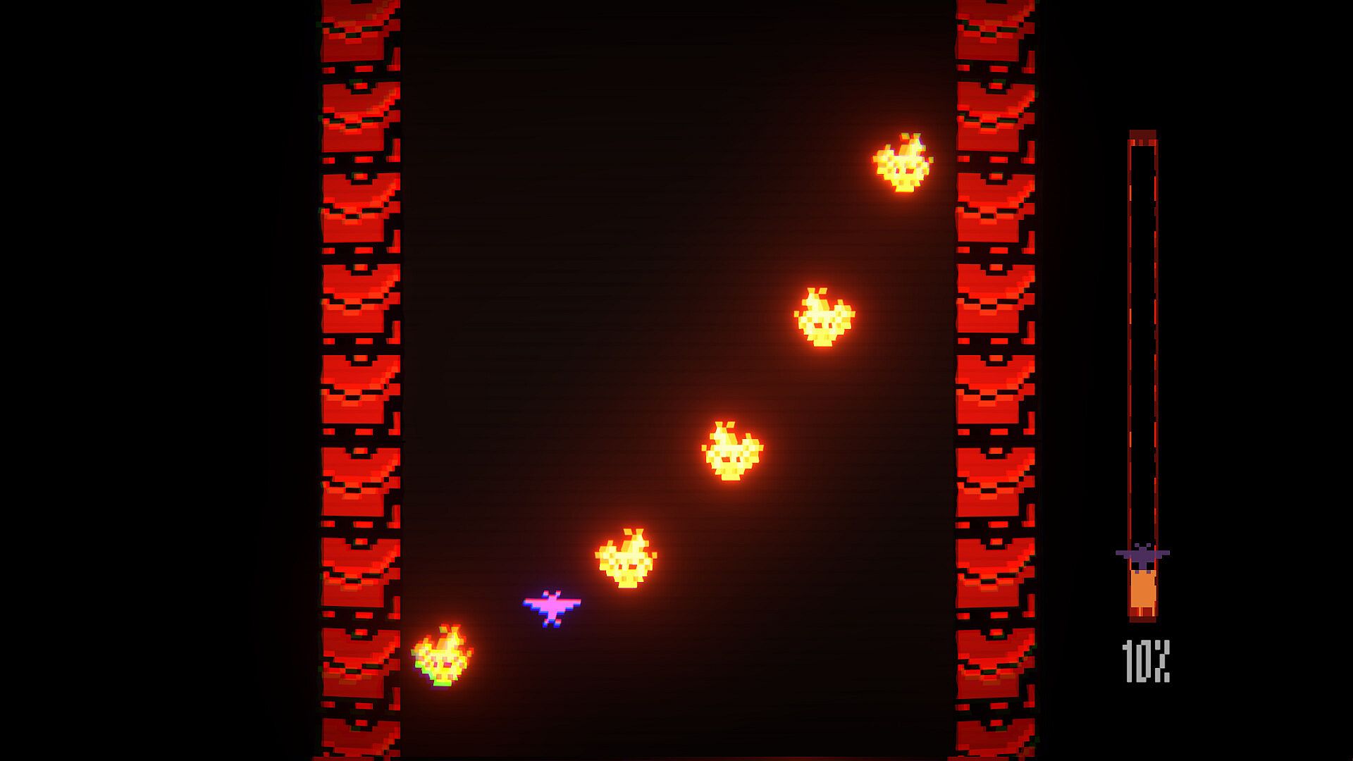 Pure two‑key action. Use A and D to weave through fire and brimstone and survive a rising storm of precision hazards.