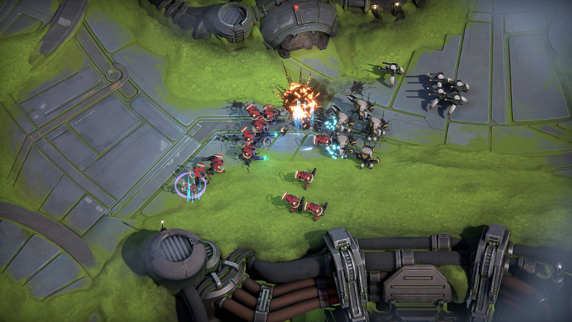 Battle Aces features multiple innovations in design that, when combined, helps focus on getting to the action in the fastest way possible! Automated resource gathering, preset expansions and instant unit spawning allows you to focus on the action-packed battles against your opponent. Incredible leaps in UI enable strategic choices in timing, as you determine what to do when you know your opponent is upgrading their tech or expanding with additional resource bases. This UI is complemented with seamless control of vast large-scale armies, with just two global menus, making the game easy to learn, difficult to master – with infinite replayability!