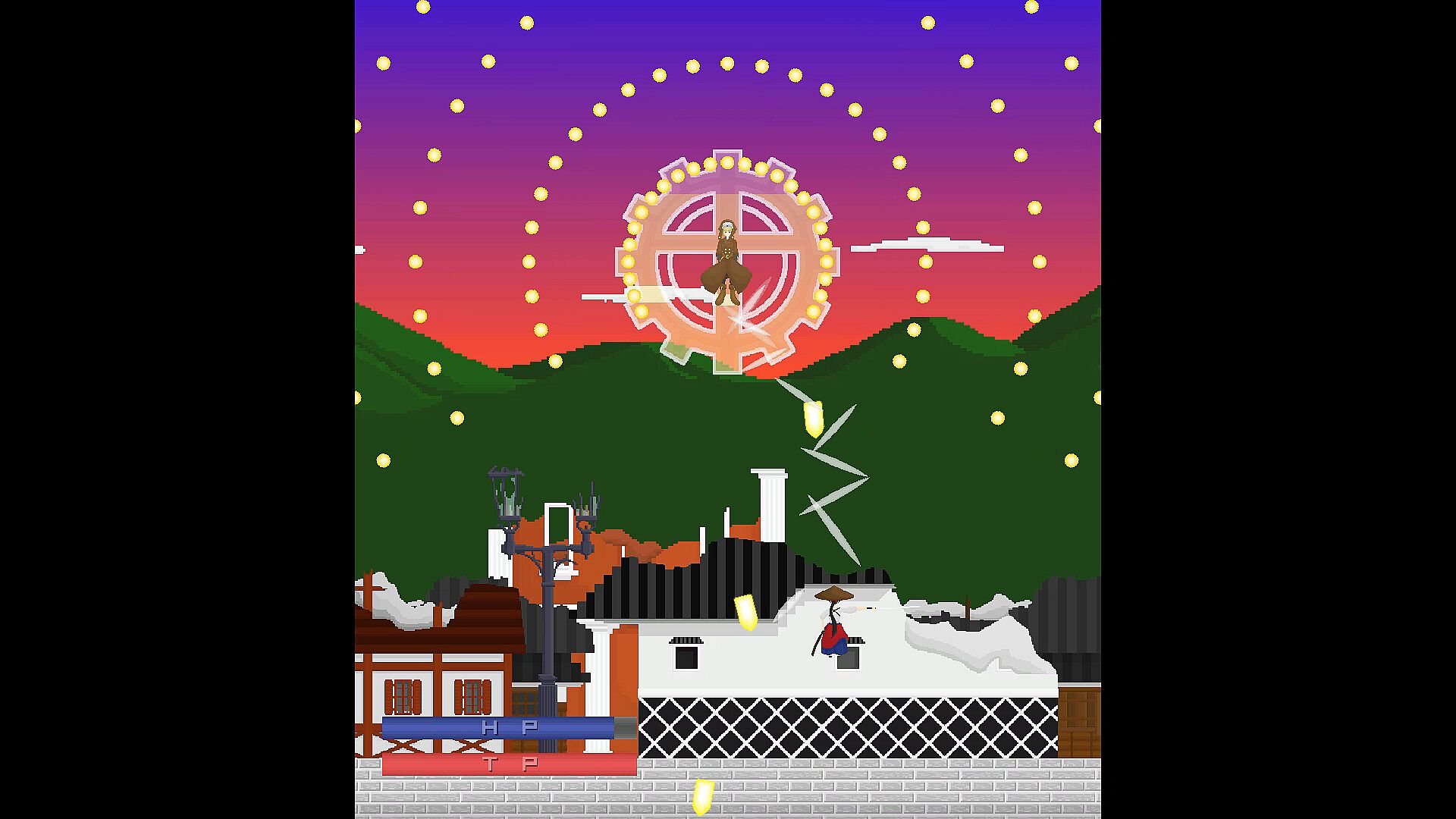 The gameplay is a hybrid of side-scrolling action and bullet hell shooting.