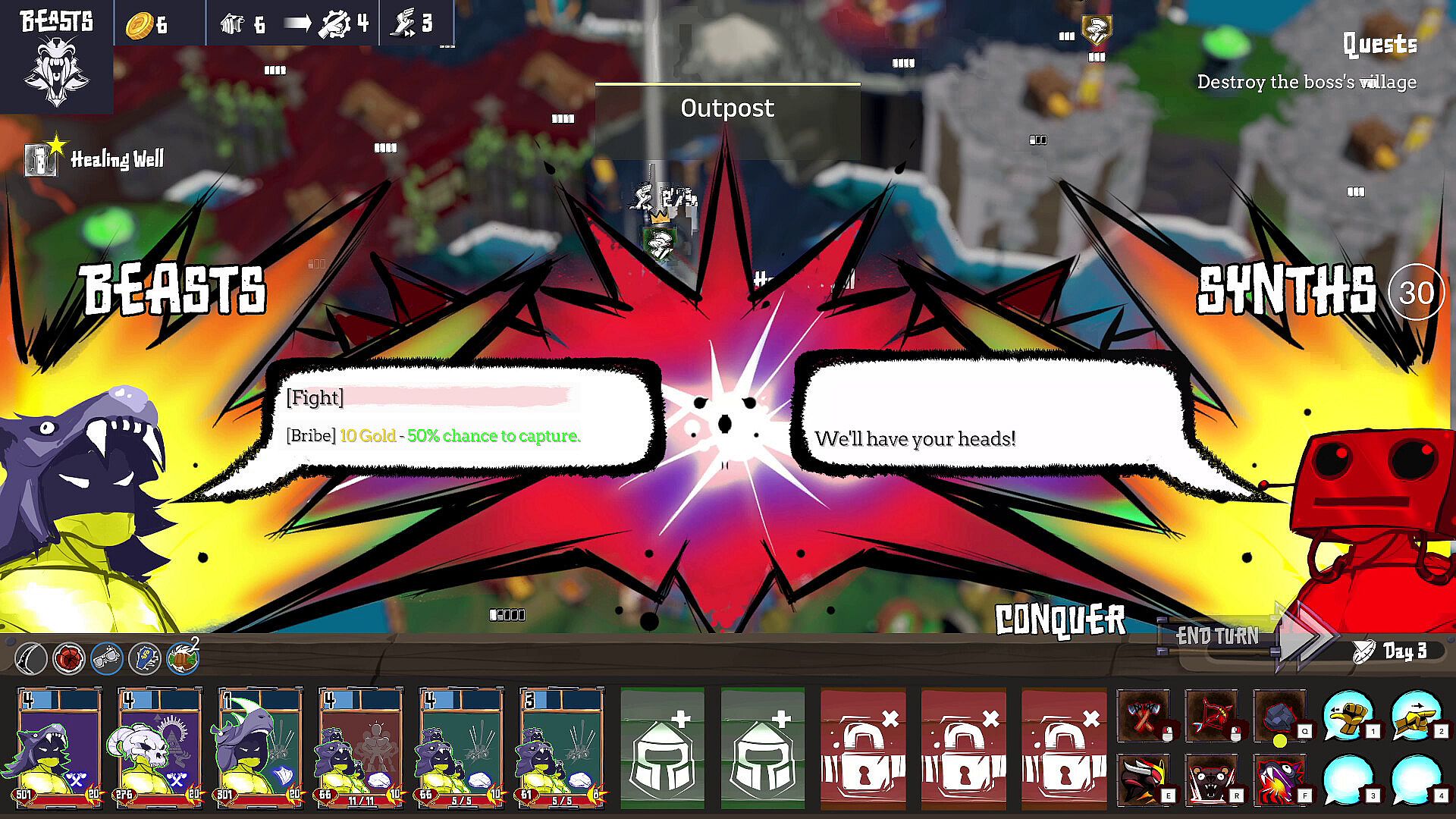 ️ Command Your Villagers – Collect villagers to issue new orders: heal your lads, invest gold, or toss a few lads into the sacrificial pit.