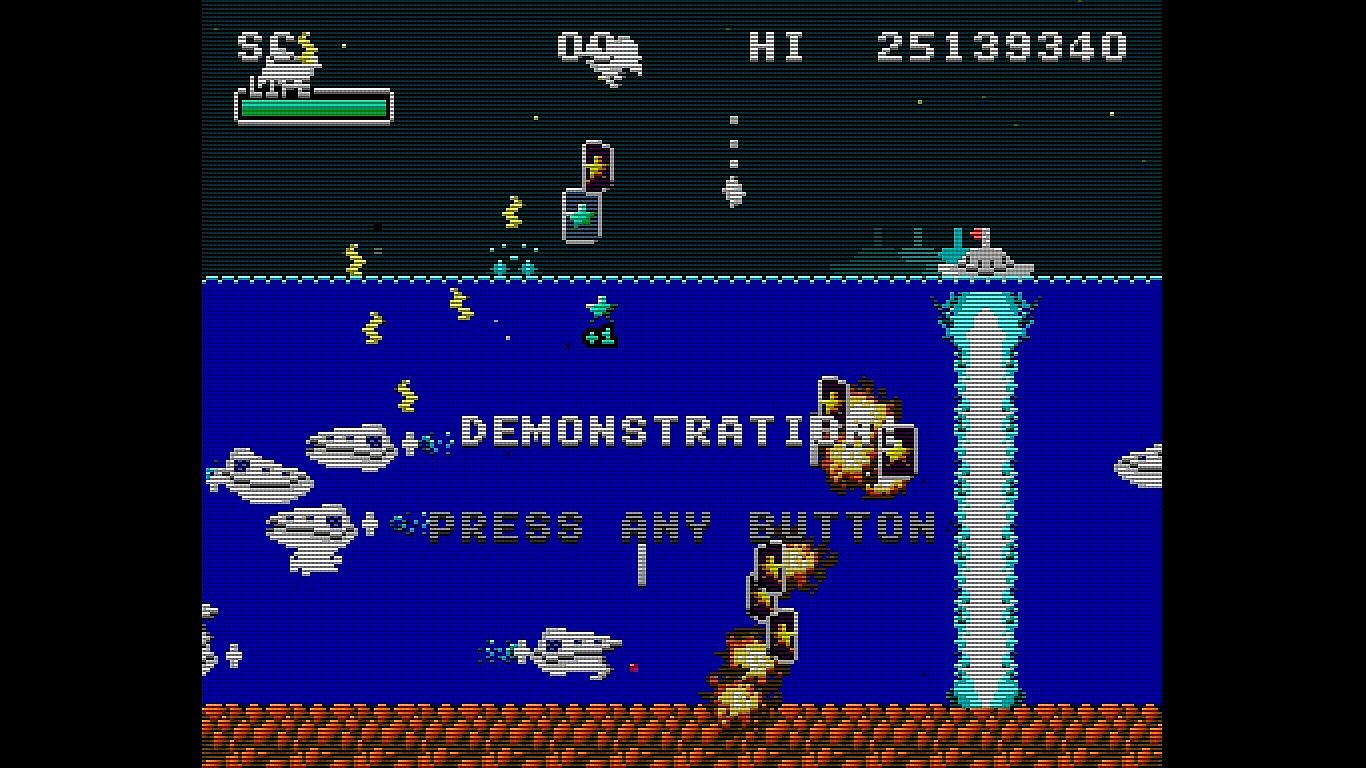 Enjoy a somewhat retro yet new and exhilarating game experience by firing a barrage of shots, inducing explosions, sweeping with powerful lasers, and automatically collecting medals (recovery and score) by jumping.
