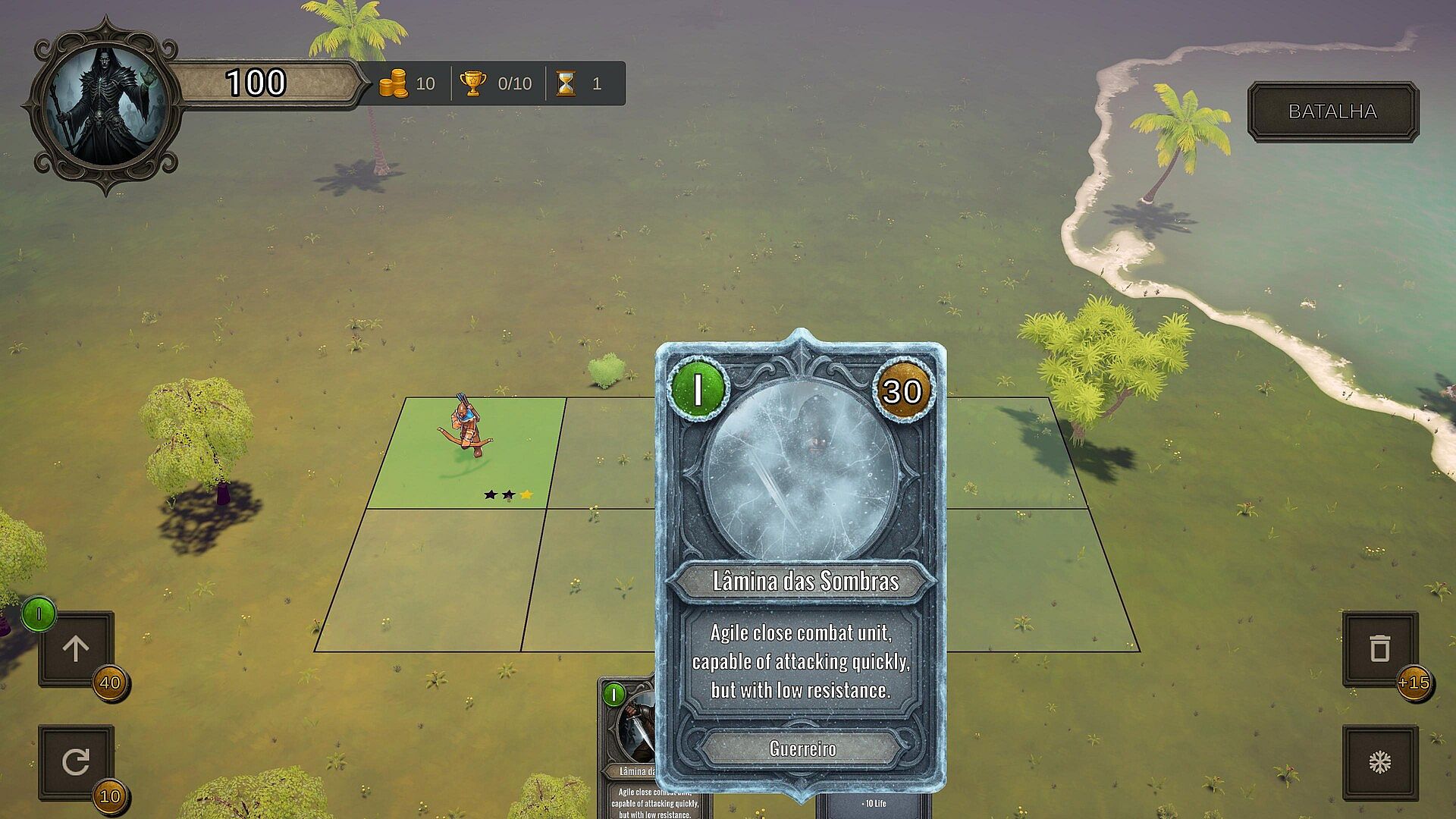 Shop management: spend your gold to buy troops, upgrade units, reroll for new cards, or freeze options for future turns.