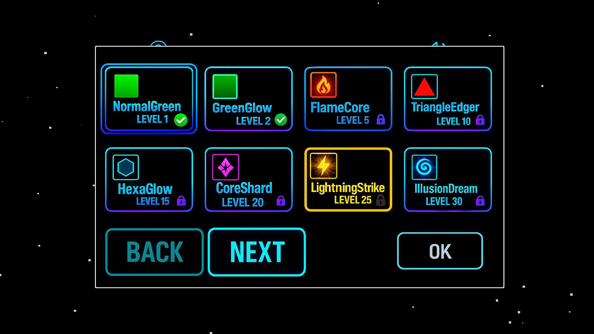 XP system with unlockable neon skins