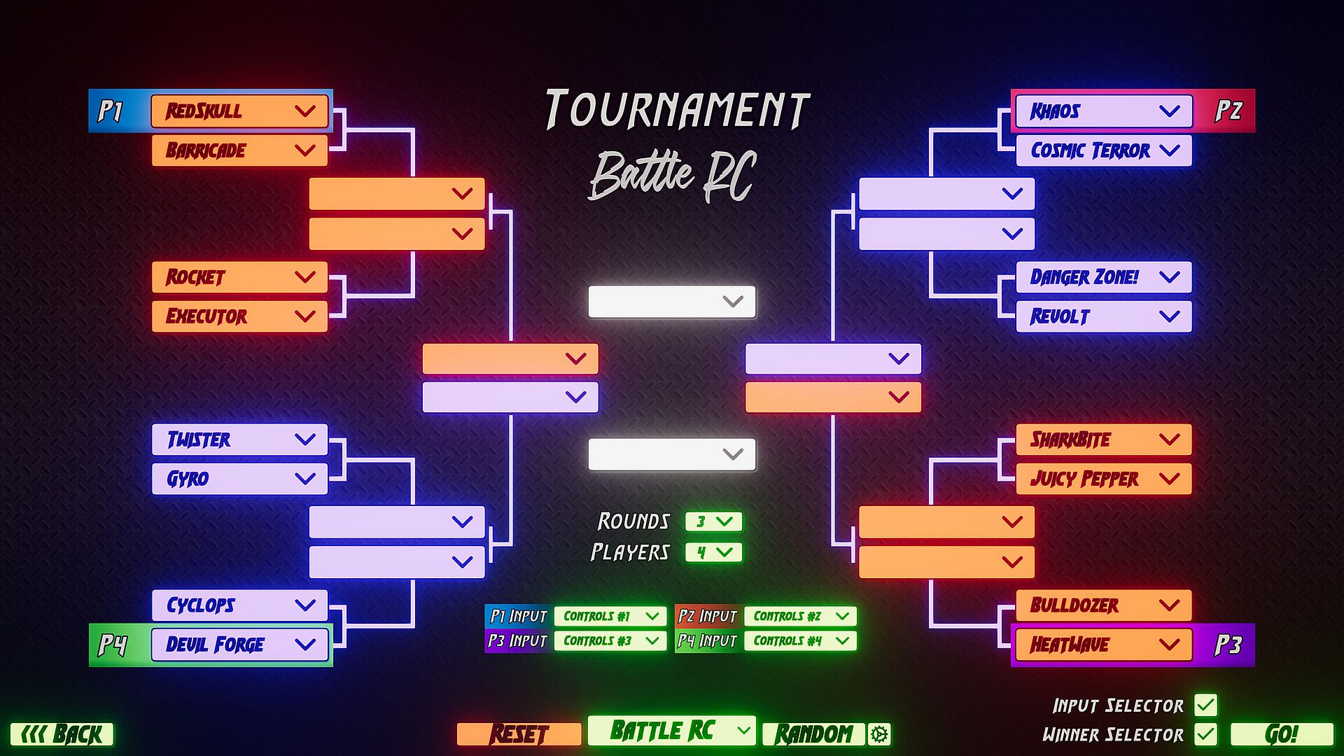· Up to 4 Players in 2v2, 1v1, and rumble matches