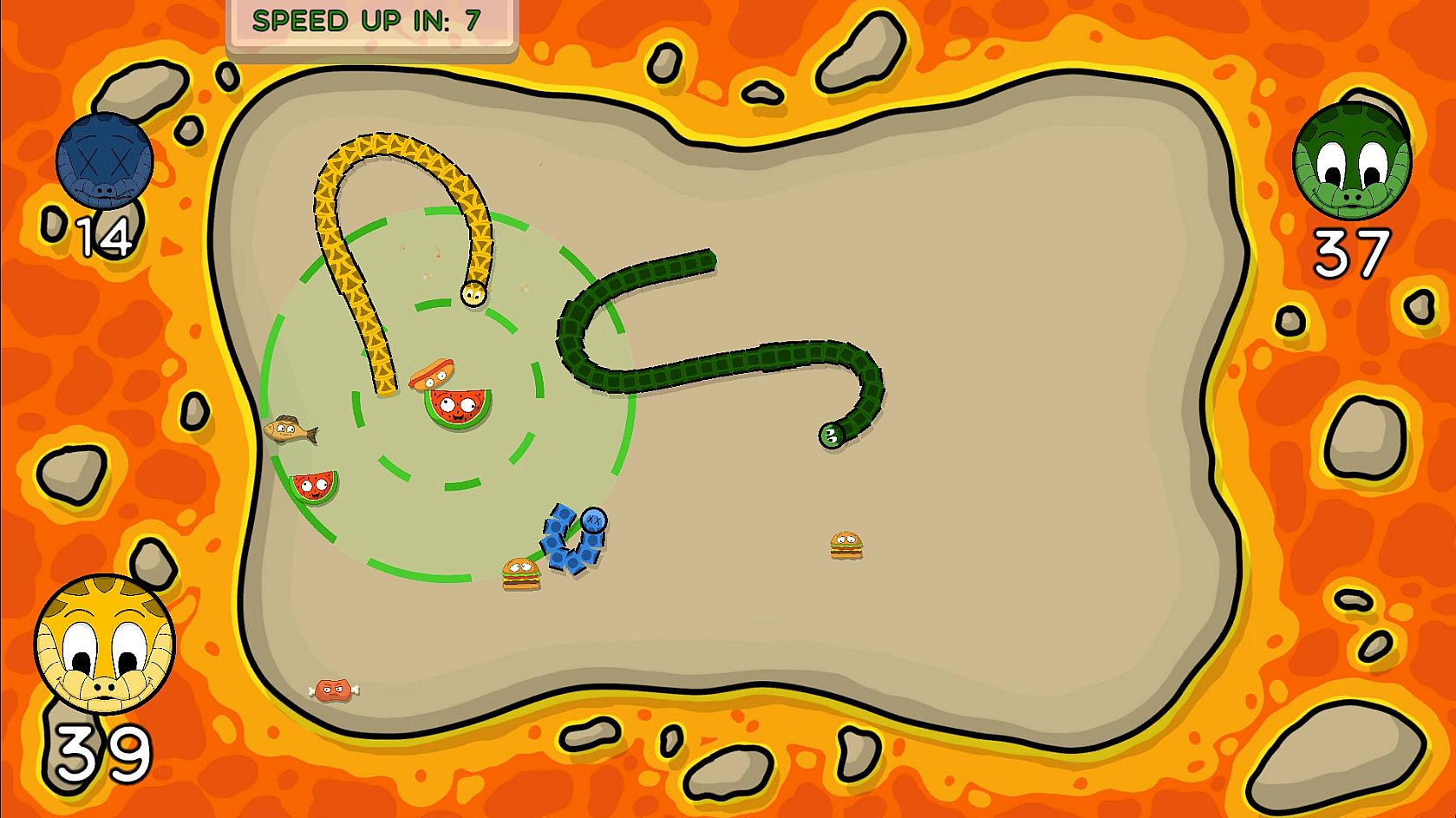Compete against 2-4 friends in this local multiplayer arcade game on PC, battling across 12 unique maps to become the last snake standing. Players share one keyboard with simple controls that suit beginners, grabbing food to rack up points and grow longer. Six powerful powerups spice up the action during short rounds that restart quickly. This casual indie title delivers fast-paced fun for players who enjoy quick arcade sessions with friends. Outmaneuver rivals in tight arenas, using length and boosts to claim supremacy. Perfect for casual gamers seeking easy-entry local multiplayer chaos.