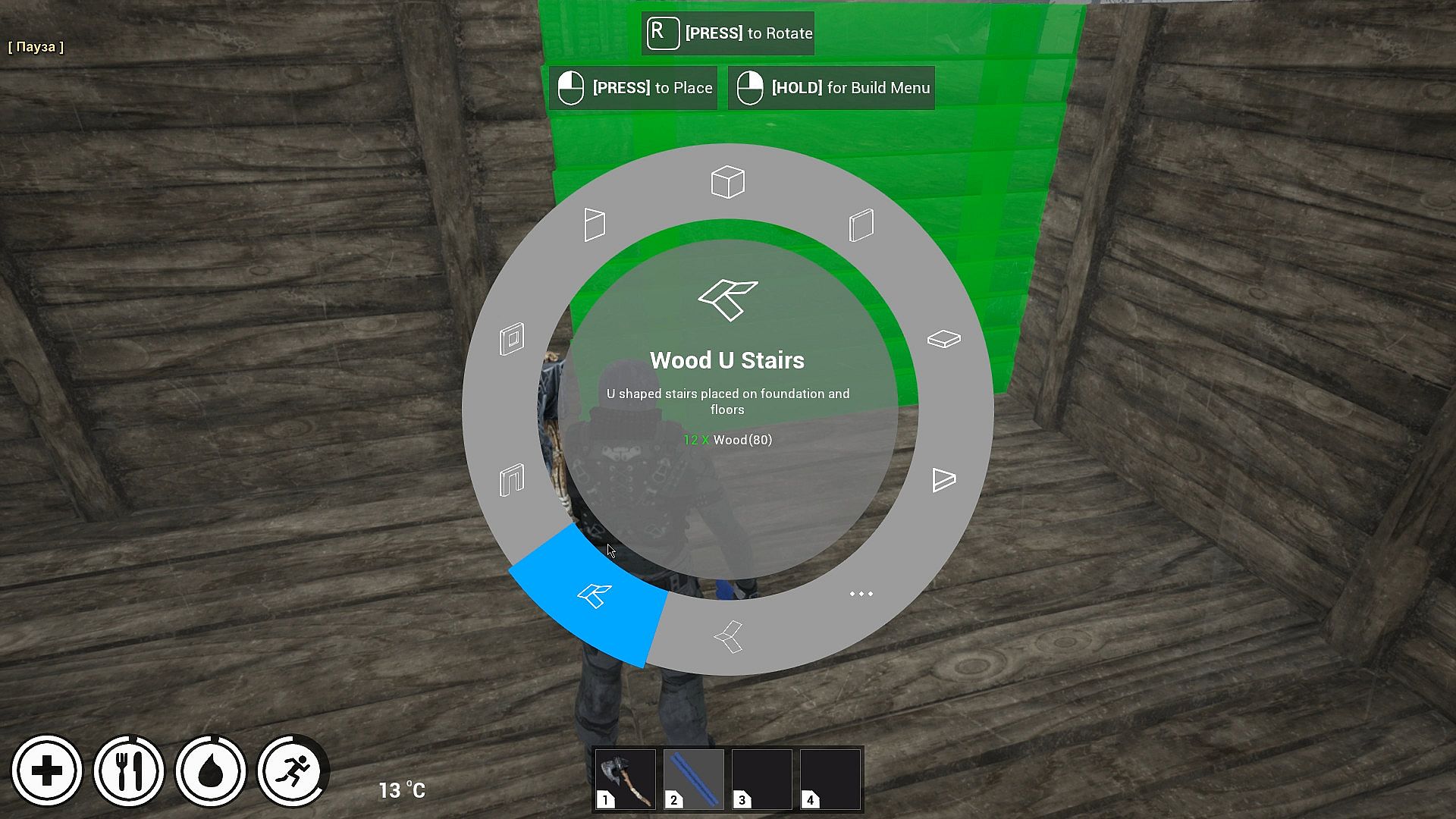 First, choose where you are going to build, it is desirable that this would be on an even and large enough area. If the image is red, then you cannot install it there, if it is green, you can. Be sure to improve all the elements of construction: the foundation, walls, doors, and roof, because if at least one element is not improved, it will break and easily allow unwanted entry.