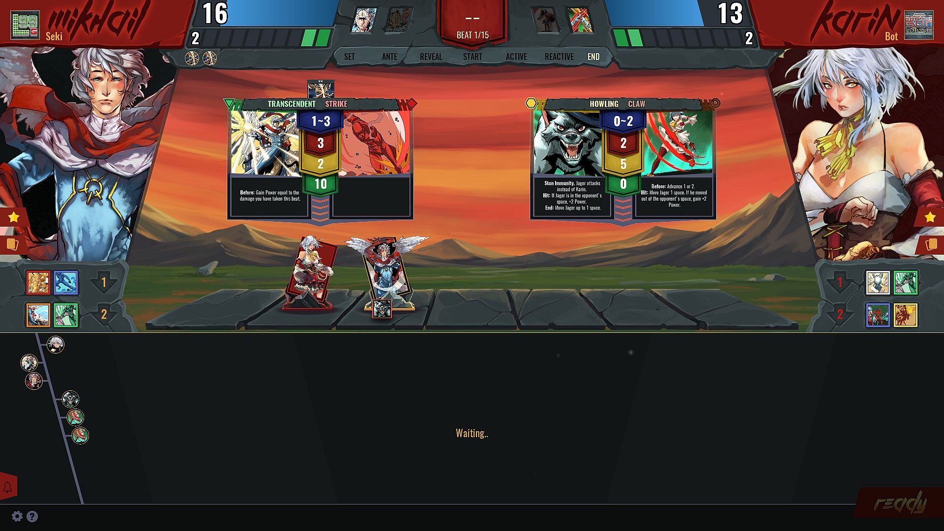 In this deeply strategic, full-information battle card game, you will choose your fighter from a diverse roster of spell-slinging duelists, tag-teaming werewolves, time-traveling boxers, dimensional knights, and more! Each fighter brings their own unique sub-system to combat, and comes with their own complete kit–no deck building or collecting necessary! As with any fighting game, the fighters have fixed skill sets. Knowing and mastering the interactions between your abilities and your opponents' skills is key to victory.