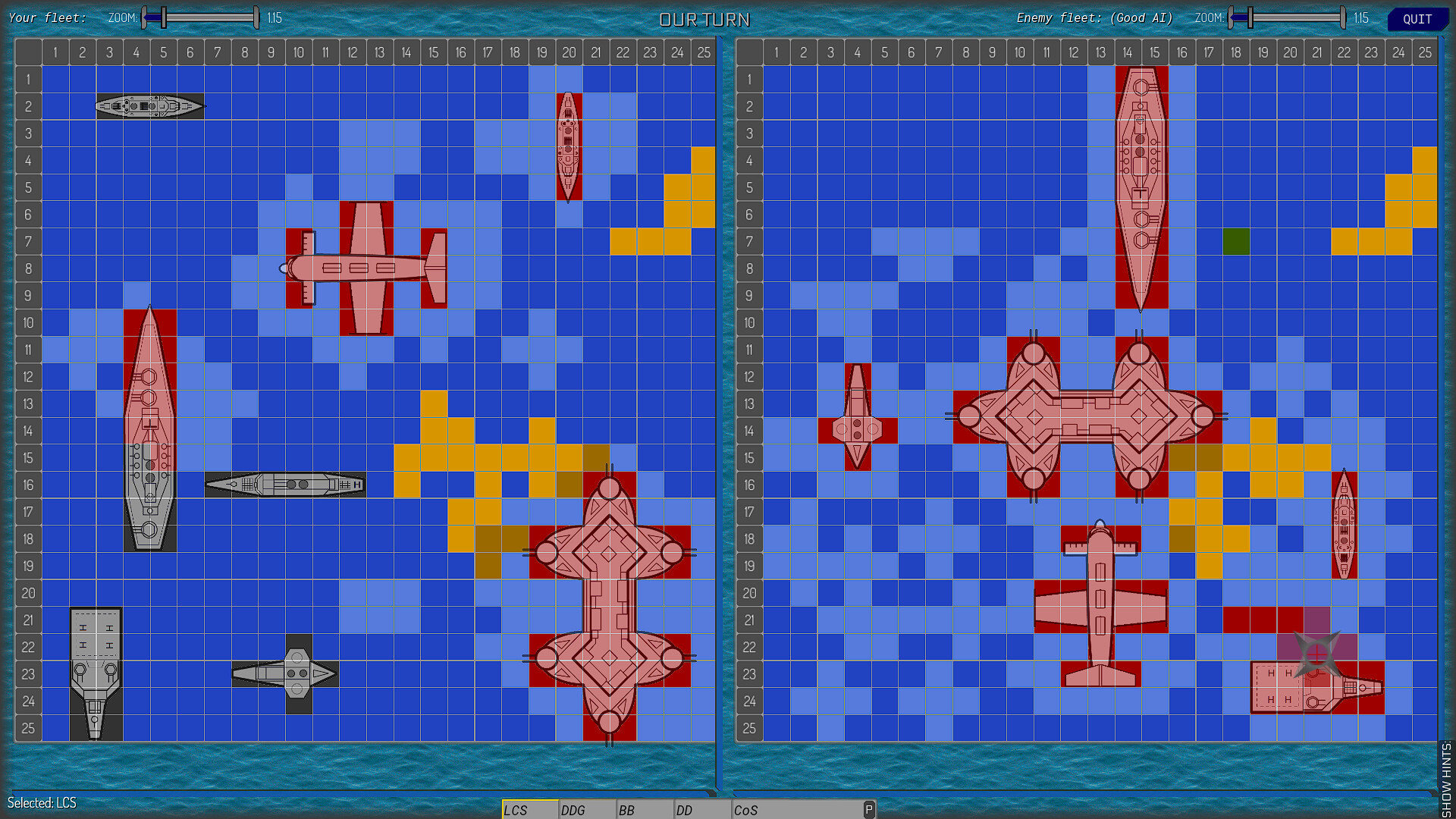 A spiritual successor of the classical pen & paper sea battle-type games, where player take turns to guess enemy ship position