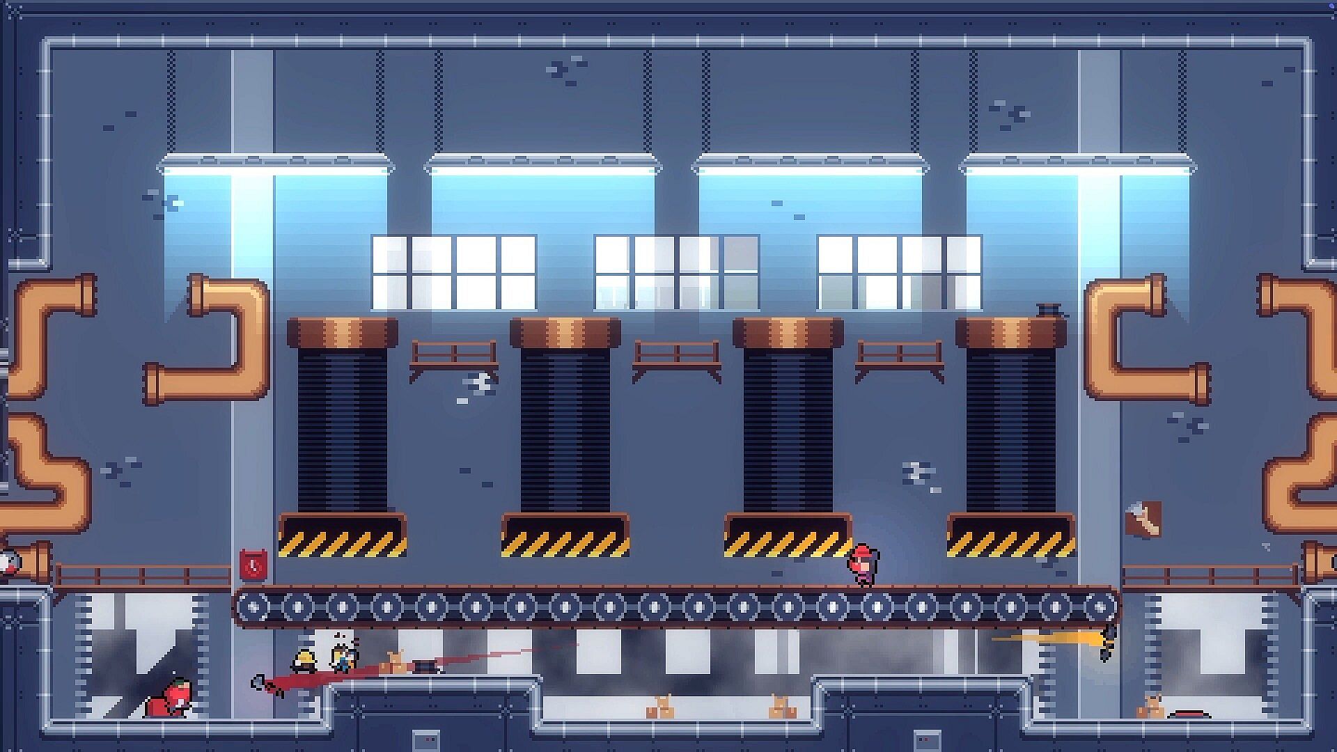 Battlewrights is a hilarious local multiplayer combat game for two to four players. The core mechanics are deceptively simple: Press button to throw your weapon, press it again to magically recall it. Repeat until you are the last person standing. Everyone can play. Every character plays the same. But if you want to take things further, try throwjumps, charged throws, perfect throws, self-evades and game-changing powerups.