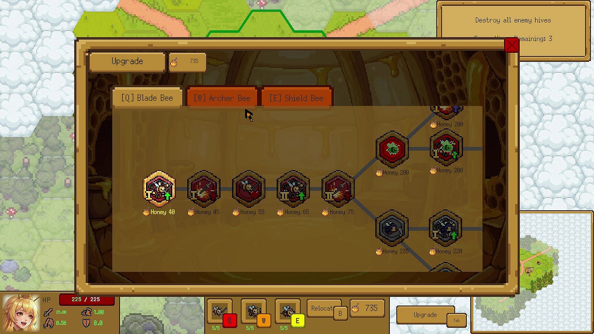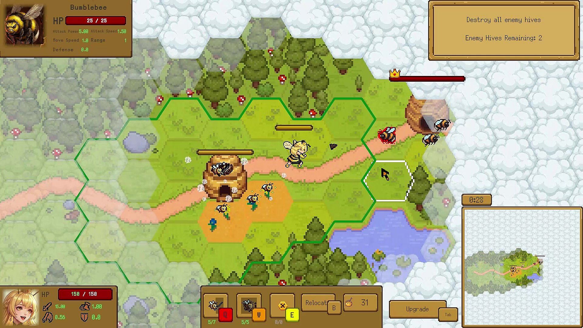 Snatch honey right from under the enemy's nose to evolve your swarm. Reinforce carapaces and sharpen stingers to move your hive toward more dangerous, yet bountiful meadows.