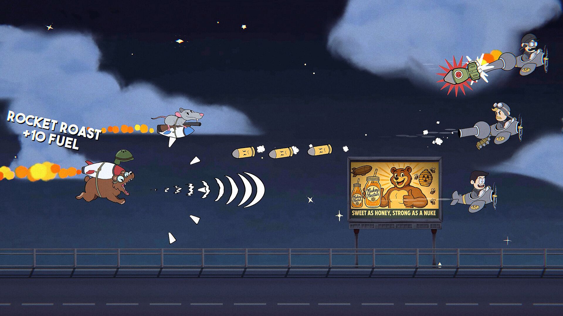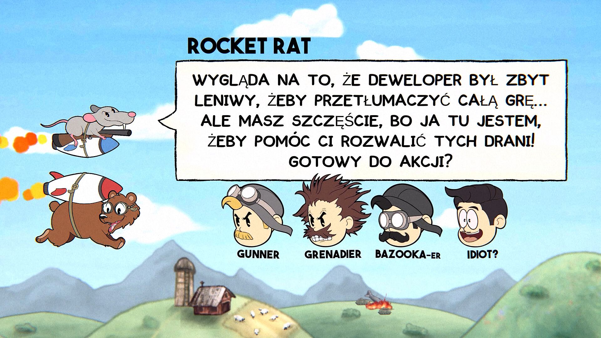Grab a controller and enlist a co-pilot! Player 2 joins the ranks as Rifle Rat, your brave, gun-toting sidekick. Join forces, double your firepower, and deliver freedom—one explosion at a time.