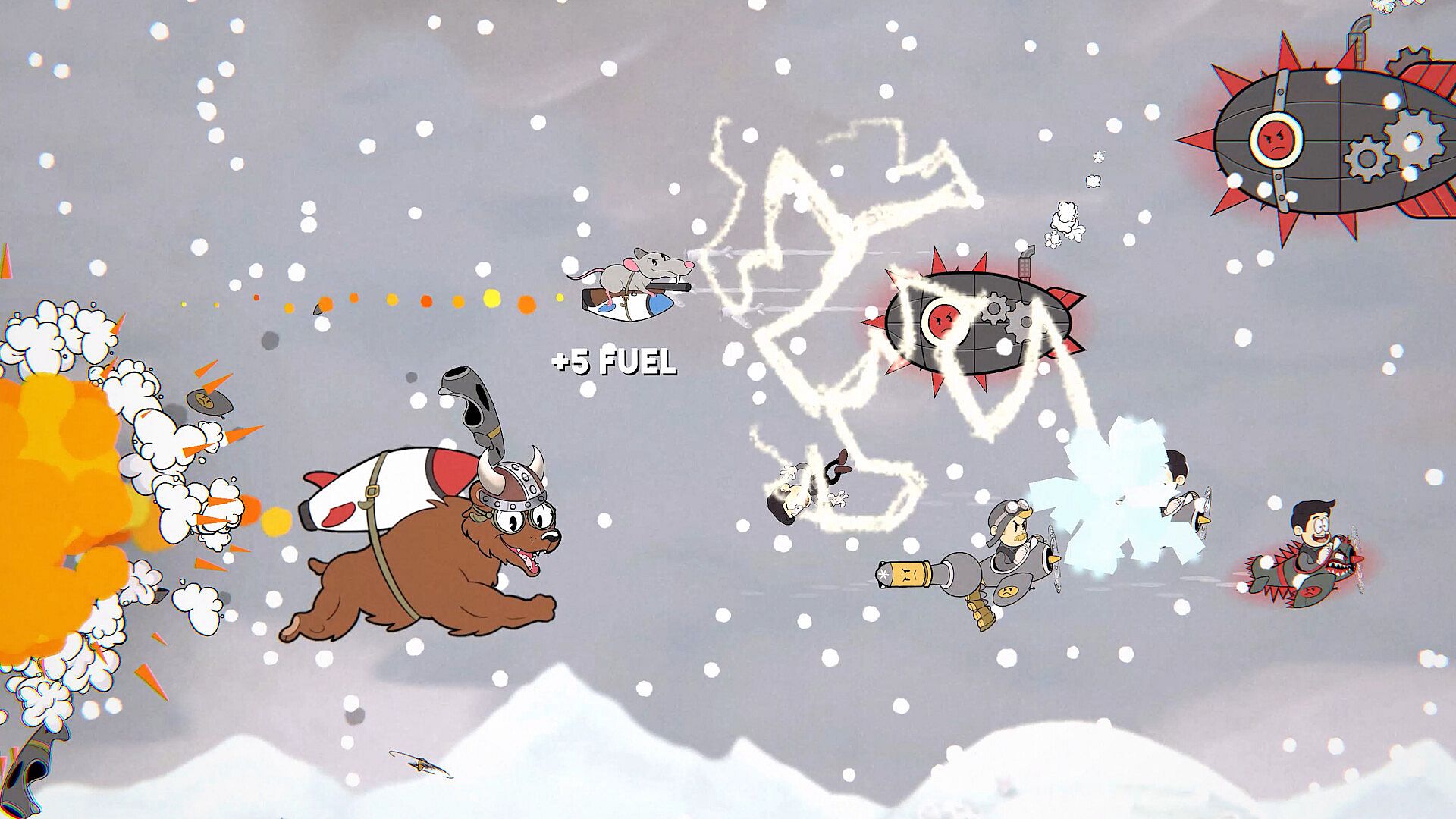 Every hero needs an arsenal... and flair! Equip bazookas, jousting lances, and other wild weapons of sky-bound destruction. Then top it all off with a tactical hat built for glory. Some hats supercharge your firepower, others give you the edge in snow, rain, or stormy skies. The right loadout turns you into a flying fortress!