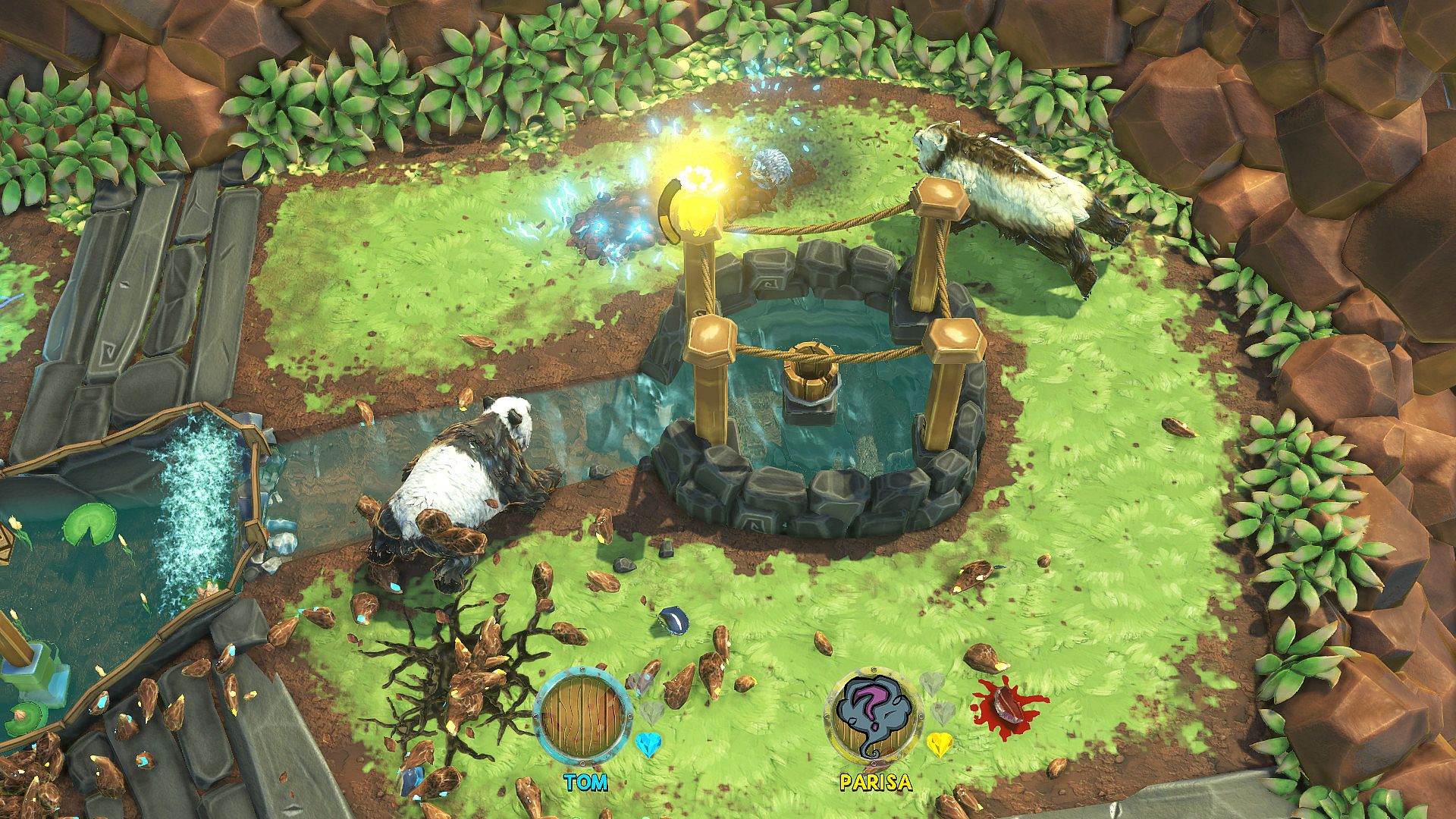 Trap other players using rock walls, and activate your powerups at just the right moment on your way to killing the hell out of everyone. The end goal of HUNT is simple, be the last Critter left with the Bear. HUNT is a last man standing scenario with a variable number of bears, lives, and powerups, spread across a broad selection of open, twisting maps.
