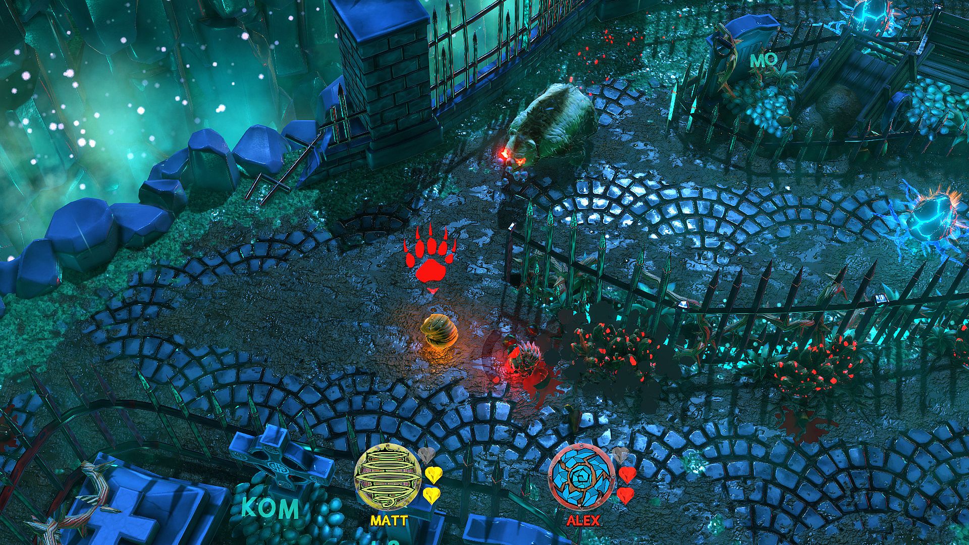 The second mode however is about moment to moment cooperation through the chaos. In GAUNTLET players must work together and use their skills in tandem to reach the end of a deliriously dangerous death zone. Here, a single touch from any of the enemies within means death, though other players can save each other with a touch of their own. As you progress you level up and become more powerful, but with equal measure the challenge is raised. This mode is also playable alone for extra challenge.