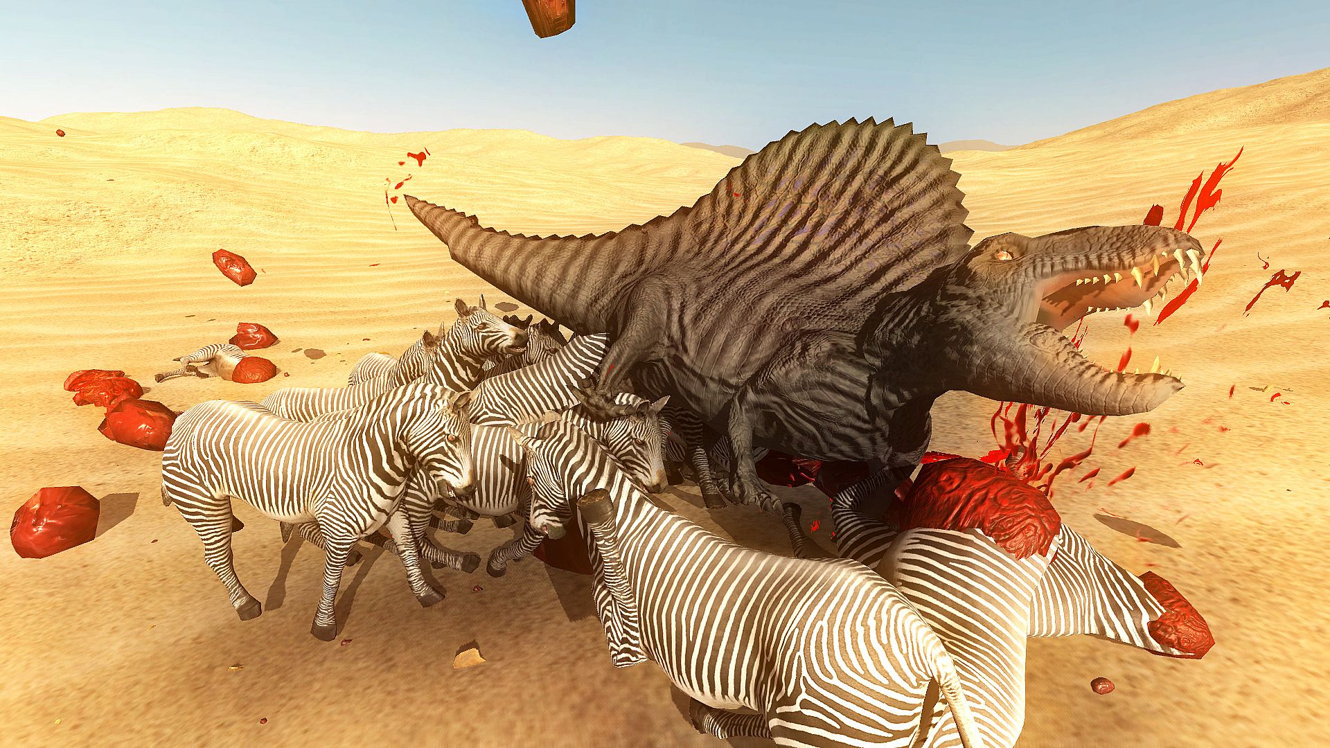 Beast Battle Simulator is a physics based battle-simulation sandbox game featuring dinosaurs, animals, and humans. Kamikaze Zebras VS. T-Rex with laser guns, Lions with machine guns VS. a flock of 50 seagulls; anything is possible! Watch as the beasts dismember and rip each other apart in gory detail!