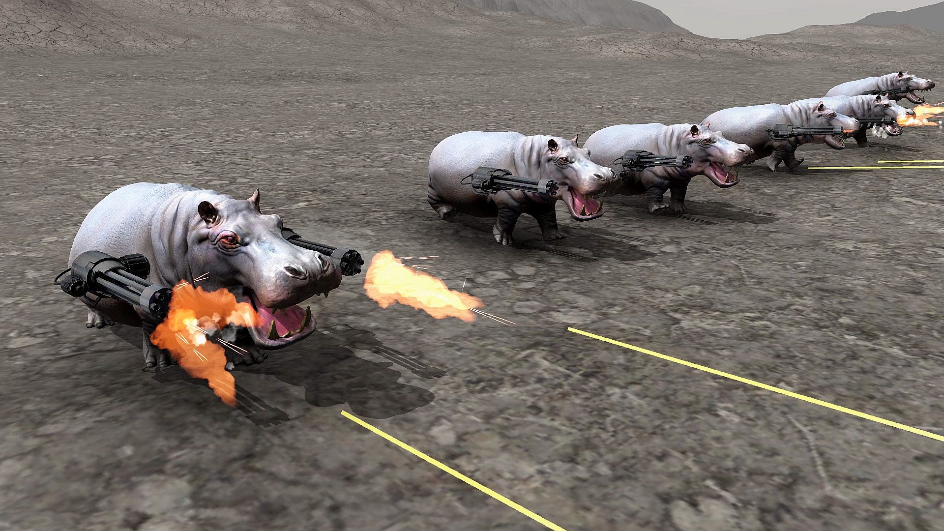 Customize your beasts by attaching weapons to them like machine guns, flame throwers, and bomb vests.