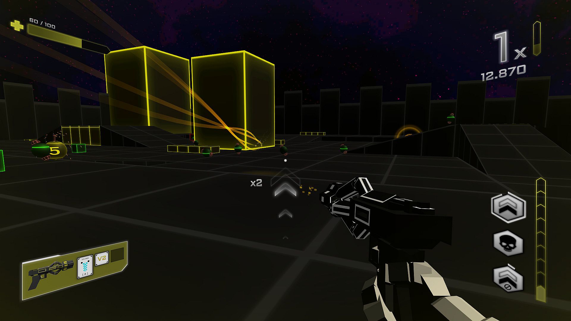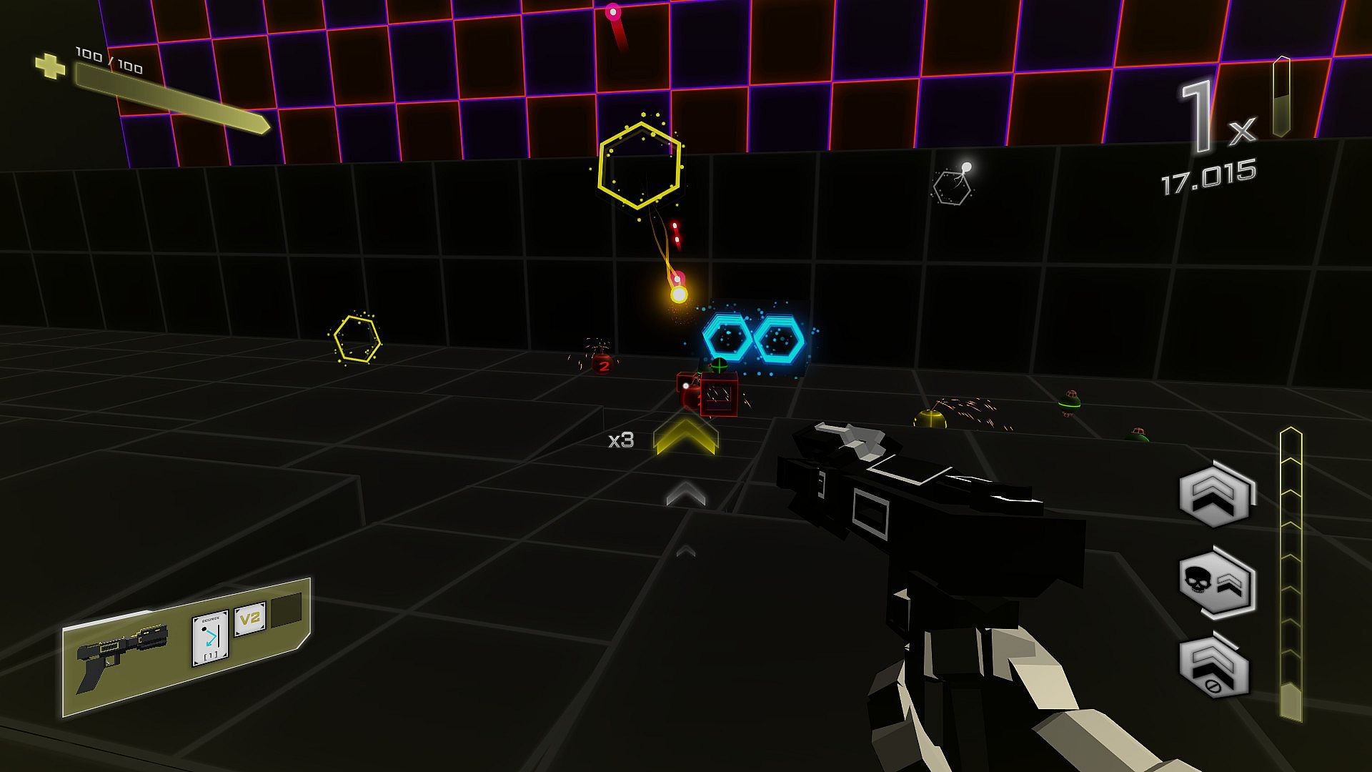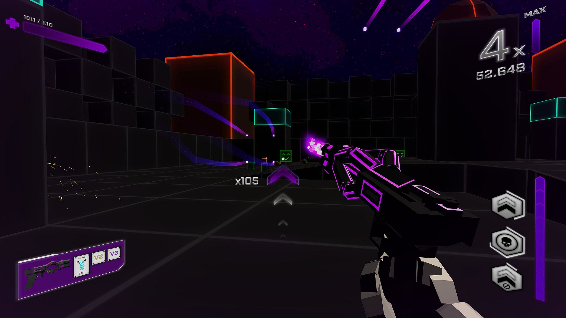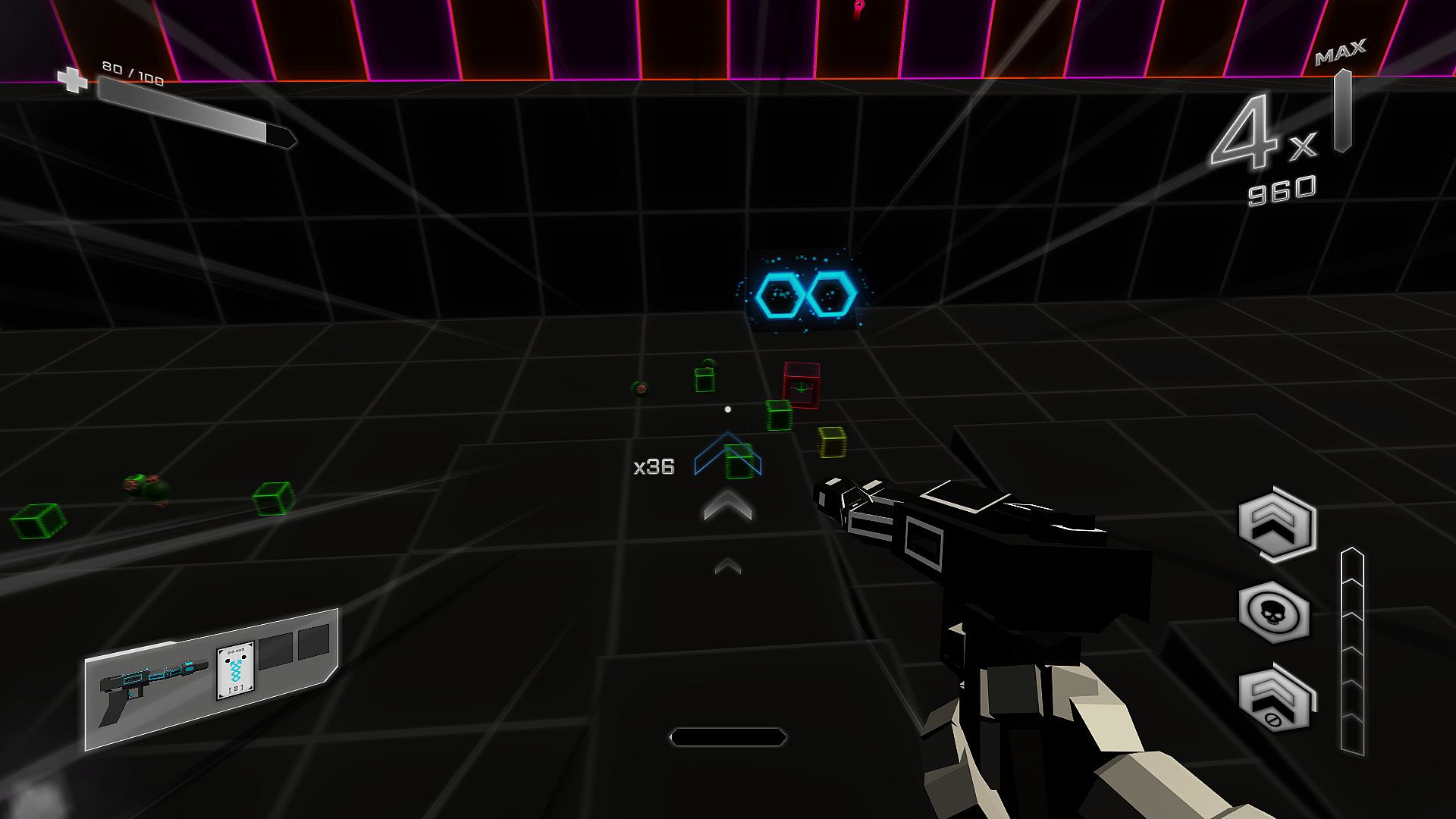 In Beat 'Em Down, the core mechanic is shoot to the beat by killing enemies. These enemies also perform their actions to the beat, so you have to move, jump and dash in a frenetic gameplay to survive in the song and level you choose.