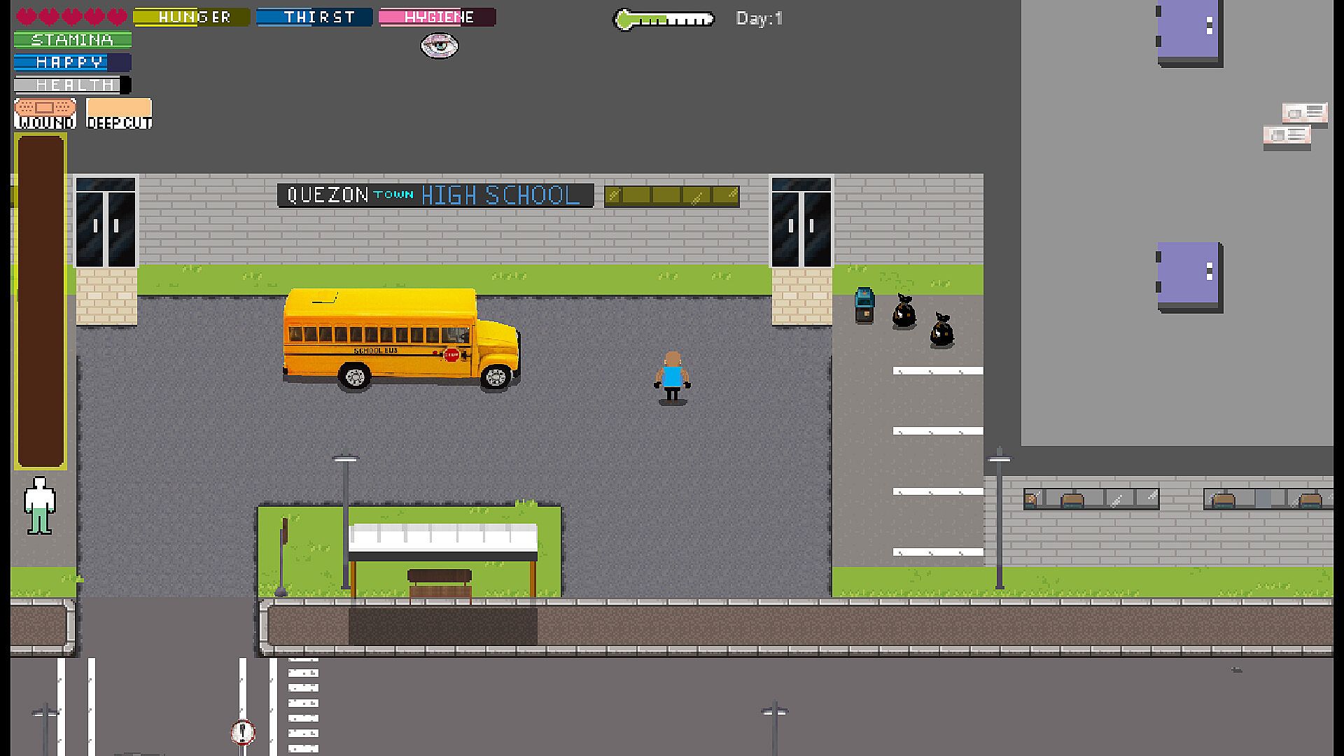 Your character must manage survival conditions beyond health, including hunger, thirst, hygiene, stamina, stress, wounds, infections, cuts, and body temperature. You can wear different clothing, helmets, masks, and armor for protection or weather resistance. Tall buildings, dangerous streets, lakes, islands, and abandoned facilities all offer different risks and rewards, and exploring them may lead to rare loot or deadly traps.
