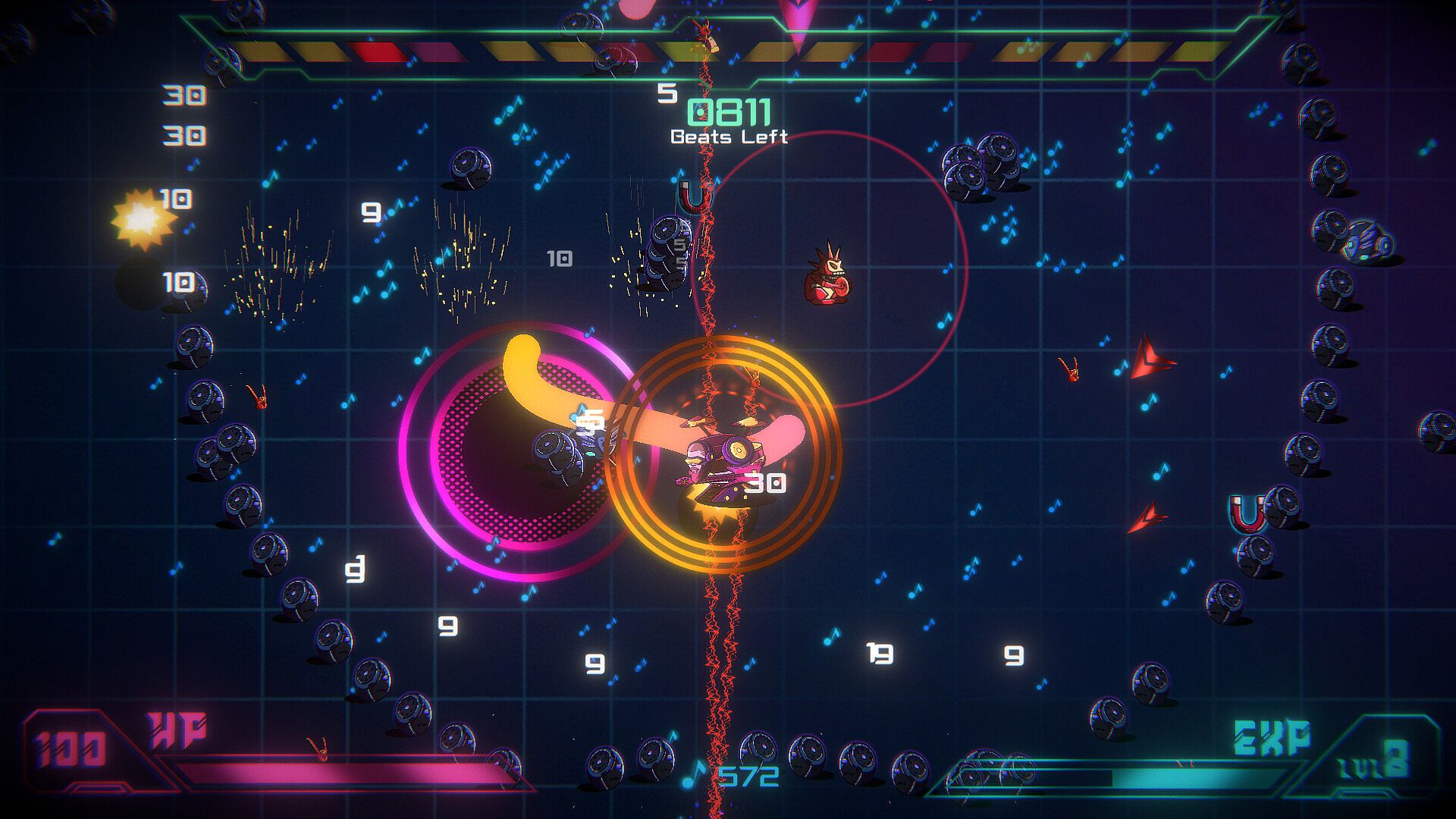 BeatPunk! is a top-down arena shooter roguelike where you play as a musician trying to survive a horde of robots by composing deadly songs. Choose from a variety of weapons, traits and sounds where each choice results in a different song and playstyle, making each playthrough unique.