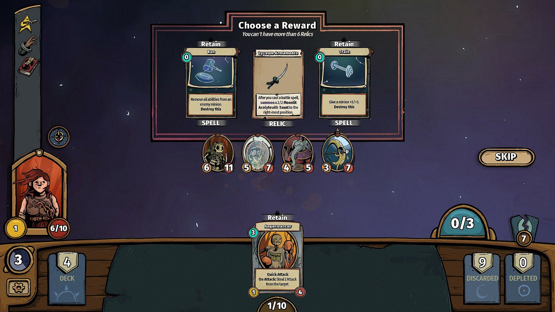 Assemble unique decks of minions, spells, and relics. Each round, you’ll be able to draft new cards to grow your arsenal, build overpowered synergies and buff your minions. Collect powerful relics to overclock your deck, and shoot for the stars!